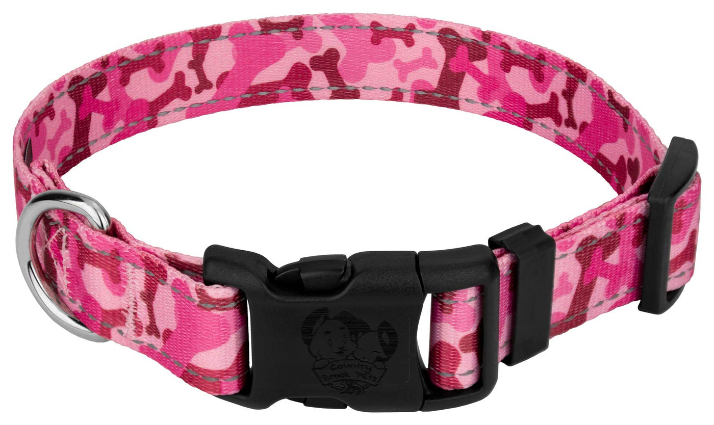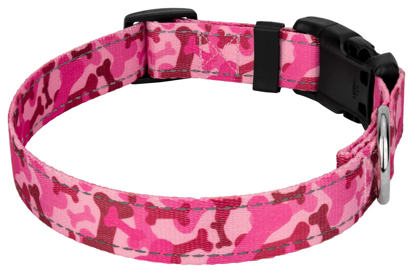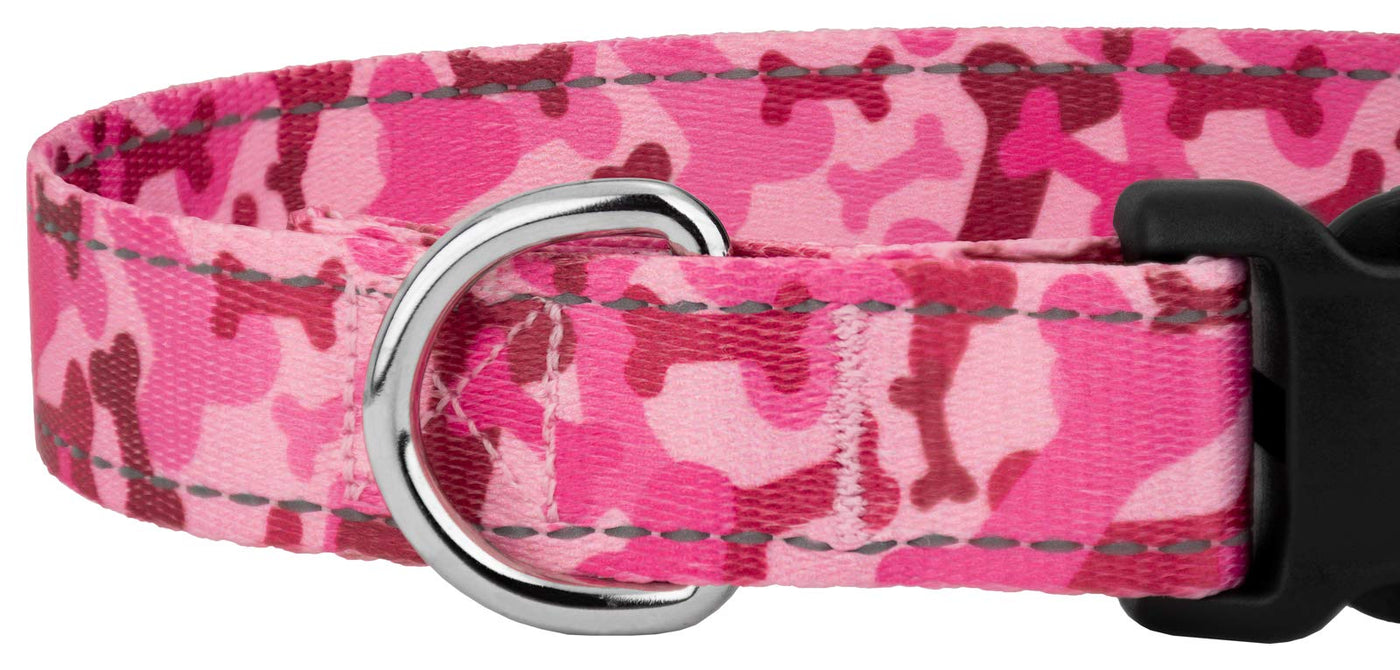 Our Deluxe Pink Bone Camo Reflective Collar Is A Stylish Accessory That Is Safe, Comfortable, And Made Right Here In The U.S.A. Featuring Two Woven Strips Of Reflective Webbing, Our Deluxe Reflective Dog Collar Is Ideal For Night Safety. These Collars Are Constructed Using Strong Polyester Webbing, Durable Plastic Buckles, Heavy-Duty Wide-Mouthed Triglides, And Heavy Welded D-Rings. Ribbed, Soft, Sleek To The Touch, And A Bit Of Sheen, These Collars Not Only Offer Safety, But Will Make Your Pup Look Great! We Only Use The Best Hardware. Our Collars Have Strong, Plastic Buckles For Your Dogs Comfort. Wide-Mouthed, Heavy-Duty Triglides Make For Easy Adjustments. The Heavy-Welded D-Rings Offer Safety For Your Pup.