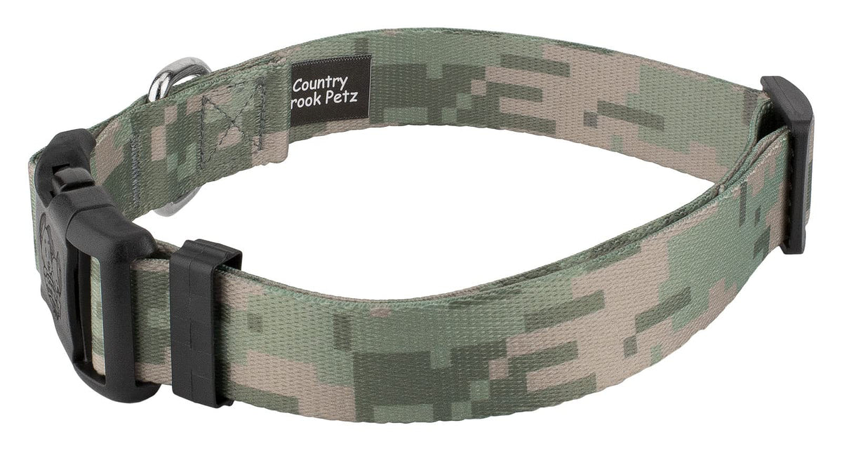 Go Under The Radar With Country Brook Country Brook Petz Digital Camo Deluxe Dog Collar Computer-Generated Pixels In Traditional, Earthy Tones Work To Keep Your Pup Blended In Great For Mimicry In Close Range Situations, Pixels In Green And Tan Provide The Needed Cover For Your Camouflaged Needs These Deluxe Patterned Collars Are A Safe, Comfortable, Collar Made Right Here In The Usa We Like To Give You The Assurance That Our Dog Collars Are Made To Last So We Construct With Ykk Contoured Side Release Buckles, Strong Polyester Webbing, Heavy-Duty Wide-Mouth Triglides, And Heavy Welded D-Rings Our Polyester Collars Are Ribbed, Soft, And Sleek To The Touch With A Little Bit Of A Sheen We Make Sure That Your Pet Shines Like The Star They Are We Know That You Have Your Petas Comfort And Safety As A Top Priority, So Do We The Extra Small, Mini And Micro Are Still Reliable With A 700 Lb Tensile Strength, Even Though They May Seem Delicate We Want Your Furbaby To Be Able To Show The World Their New Collar Immediately, So Be Sure To Measure For The Right Size You Can Check This Out By Using A String, Or Tape Measure, To See Where The Collar Will Fit Snugly And Comfortably On Your Dogas Neck These Stylish Prints Work Well With Both Boy And Girl Puppers