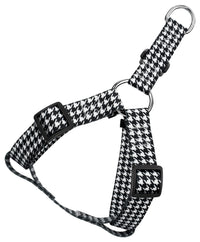 This Classic Textile Pattern Is An Arrangement Of Abstract Four-Pointed Shapes In A Traditional Black And White Layout. Crisp Lines Create A Duotone Weave That Is Both Intricate And Beautiful; A Versatile Design That Is Timeless. Unlike Collars, Harnesses Are Designed To Take The Pressure Off Of Your Dog'S Neck And Place It Onto Their Chest. If Your Puppy Is An Escape Artist With Collars, Our Harness Will Be Able To Restrain Them Easily. The Country Brook Petz Houndstooth Step-In Dog Harness Will Keep Your Pet Secure And Keep You In Control! The Step-In Style Harness Is Easy To Put On And Take Off. Simply Lay The Harness Flat On The Ground And Place Your Dog'S Front Paws In Each Opening And Then Buckle The Harness Together Around Their Back. The Step-In Design And Plastic Adjustable Slides Will Ensure A Great Fit For Your Pet.