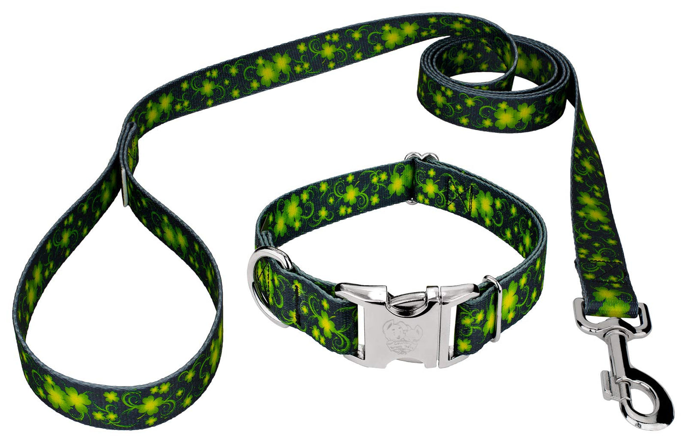 Country Brook Petz - Premium Clovers In The Wind Dog Collar And Leash - Irish Pride Collection Featuring Lucky Designs (5/8 Inch