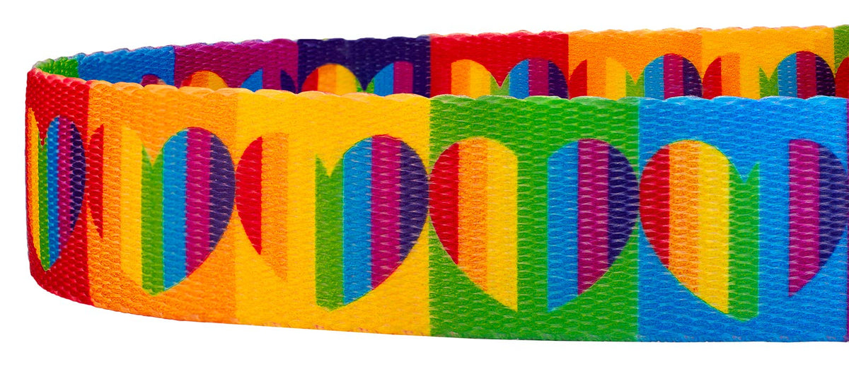 Feel The Love With Our Rainbow Hearts Dog Leash! This Multicolored Design Features A Row Of Rainbow Hearts On Multiple Hued Blocks That Are Symbolic Colors Of Pride And Acceptance. These Patterned Leashes Are Uniquely Designed, Have A Little Luster To Them, And Are Slick To The Touch. Available In Multiple Widths And Lengths, They Give You The Span To Let Your Doggo Feel A Little Bit Of Freedom. This Beautiful Leash Pairs Well With Our Rainbow Hearts Collars, Including Training Collars Such As Martingales. The Silky Smooth Polyester Loop Slips Over Your Hand, Giving You A Comfortable Grip While Walking Your Pet. Box Stitching Ensures Strength For When Your Pup Pulls Against Their Leash. These Leashes Are Washable, With Mild Detergent, And Dry When Laid Out. The 1/2 Inch Sizes Are Still Reliable With A 700 Lb. Tensile Strength, Even Though They May Seem Delicate. We Know That You Want The Best For Your Pets, Thats Why We Make All Of Our Products Here In The United States. Walk Your Pup With Confidence Knowing That Country Brook Petz Has You In Mind When Creating Our Products.