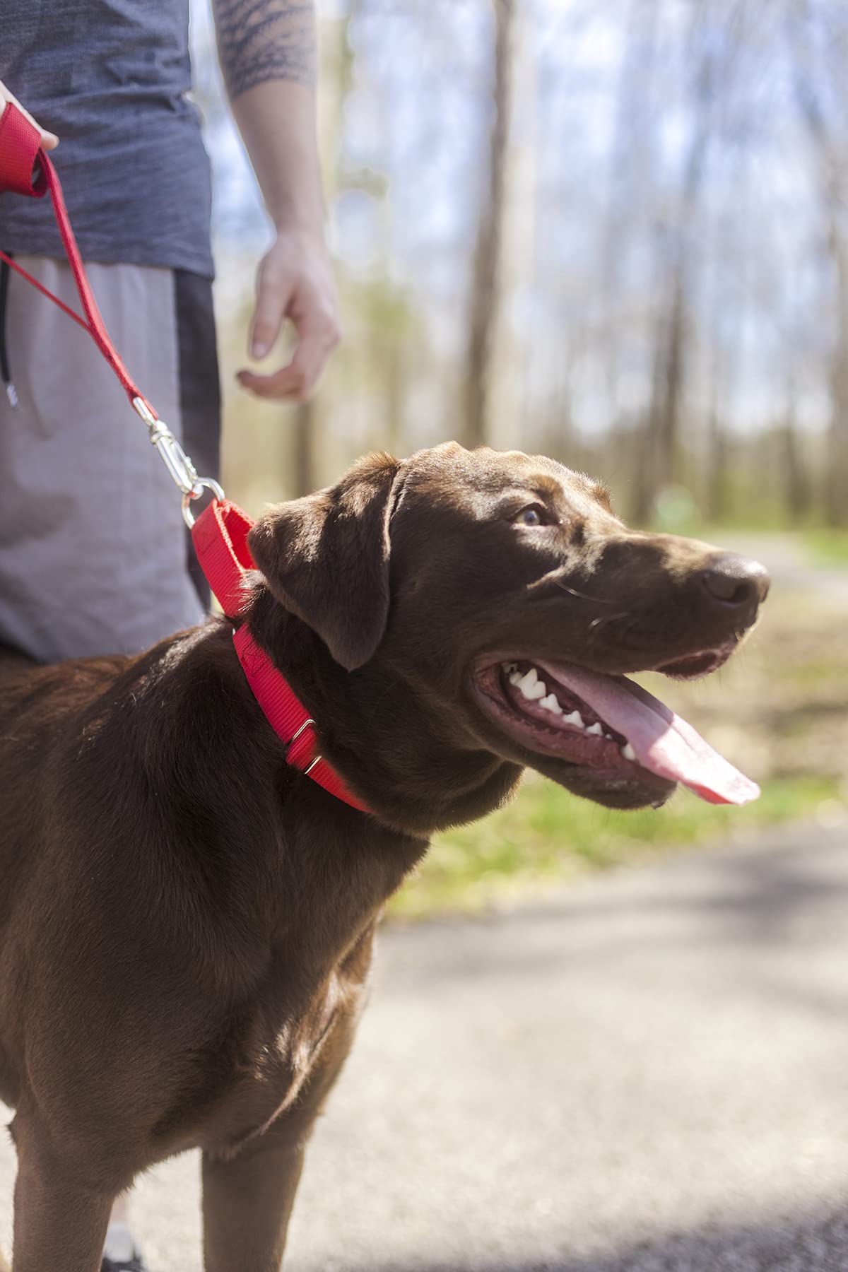 Country Brook Petz Martingale Heavy-Duty Nylon Dog Collars are a great solution for your pup’s pulling. Made with two loops, our martingale style collar will give you gentle control when walking your pet. Perfect for training, our collar is designed to prevent your pup from slipping their head out of it. As your pet pulls, the collar will tighten without choking them. When the tension gives, so will the collar; the martingale will loosen when your dog stops struggling against it. The limited closure of the Martingale collar prevents it from becoming too tight. A no-slip, adjustable-choke collar is an excellent solution for hard-headed pups who slip out of their collars. Our collars create a secure experience for your dog. Once you receive your collar, open the collar wide by adjusting the metal slide. Slip it over your dog's neck and decrease size until you can comfortably slip only a couple of fingers under the collar. The unique limited closure prevents the choke from becoming too tight. Constructed using 100% nylon webbing, our collars are ribbed, soft, and sleek to the touch; they also sport a bit of sheen. We at Country Brook Petz pride ourselves on only using the best hardware and you can rest assured that these collars will withstand whatever your pup brings its way. All of our collars are handcrafted after the sale. We want doggos to be able to show the world their new collar immediately, so be sure to measure for the right size. You can check this out by using a string or tape measure to see where the collar will fit snugly and comfortably on your dog’s neck.