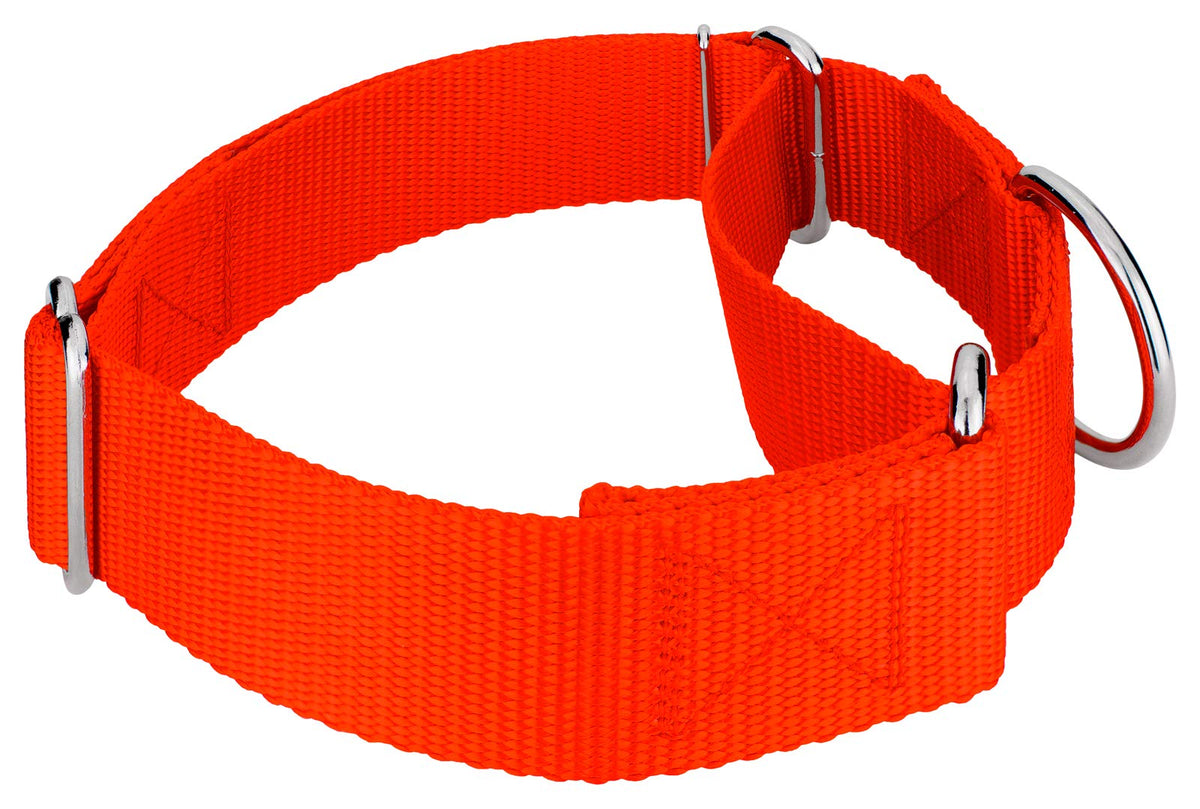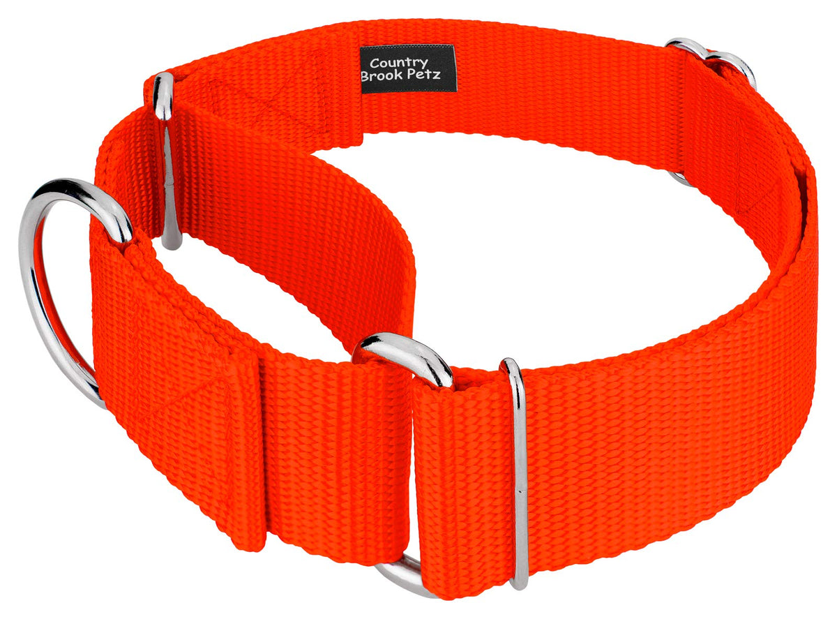 country Brook Petz Martingale Nylon Dog collars are a great solution for your pupAs pulling Made with two loops, our martingale style collar will give you gentle control when walking your pet Perfect for training, our collar is designed to prevent your pupper from slipping their head out of it As your pet pulls, the collar will tighten without choking them When the tension gives, so will the collar the martingale will loosen when your dog stops struggling against it The limited closure of the Martingale collar prevents it from becoming too tight A no-slip, adjustable-choke collar is an excellent solution for hard-headed pups who slip out of their collars Our collars create a safer experience for your dog Once you receive your collar, open the collar wide by adjusting the metal slide Slip it over your dogs neck and decrease size until you can comfortably slip only a couple of fingers under the collar The unique, limited closure prevents the choke from becoming too tight constructed using 100% nylon webbing, our collars are ribbed, soft, and sleek to the touch they also sport a bit of sheen We at country Brook Petz pride ourselves on only using the best hardware and you can rest assured that these collars will withstand whatever your pup brings its way All of our collars are handcrafted after the sale Please note that we will ship within two business days of receiving payment and size If you have sizing questions, please give us a call prior to ordering We want doggos to be able to show the world their new collar immediately, so be sure to measure for the right size You can check this out by using a string or tape measure to see where the collar will fit snugly and comfortably on your dogAs neck