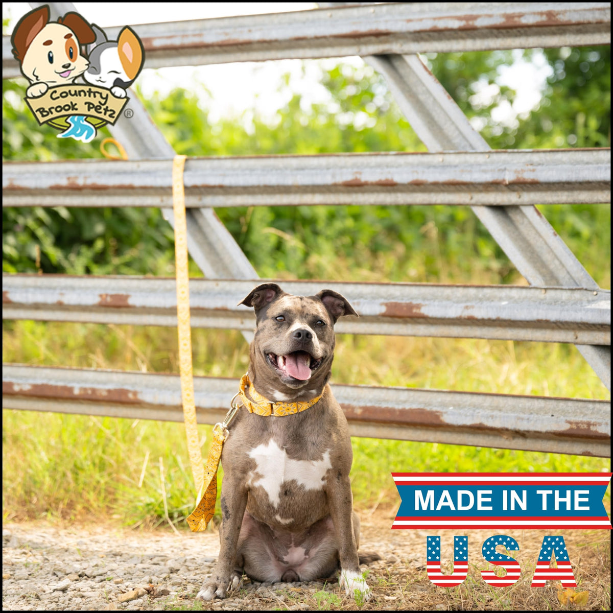 Is Your Escape Artist Slipping Out Of Their Collar? Martingale Collars Are Designed To Prevent Your Pup From Pulling Out Of Their Collar By Tightening Around Your Dogs Neck Whenever They Try To Remove Their Heads. Once Your Dog Quits Pulling, The Collar Relaxes Again. Perfect For Training, The Twin-Loop Design Gives You Control Over Your Stroll. The Martingale Collar Is Often Referred To As A Humane Choke Collar Because It Naturally Limits How Much It Tightens, Ensuring Your Dog'S Safety. A No-Slip, Adjustable, Limited Choke Collar Is An Excellent Solution For Sighthounds Who Slip Out Of Their Collars. The Iconic Yellow Paisley Bandana Has Been A Staple Of Fashion For Generations. Originating In India, The Classic Bandanna Pattern Has Become Popular Worldwide. From The Rugged Cowboys Of The American West To Modern-Day Fashionistas, This Martingale Dog Collar Captures All The History And Spirit Of This Classic Kerchief. Printed Using State-Of-The-Art Colorfast Inks, Our Collars Will Not Run Or Bleed. Crafted From Industry-Leading Hardware And Webbing, Country Brook Petz Yellow Bandana Martingale Dog Collars Stand Up Under Tough Conditions, All While Keeping Your Furry Friend Looking Fab. By Adjusting The Metal Slide, You Give Slack To The Loop. Slip It Over Your Dog'S Neck And Decrease Size Until You Can Comfortably Slip Only Two Fingers Under The Collar. The Unique Limited Closure Prevents The Choke From Becoming Too Tight. We At Country Brook Petz Pride Ourselves On Only Using The Best Hardware, And You Can Rest Assured That These Collars Will Withstand Whatever Your Pup Gets Into. Our Collars Have Wide-Mouthed Heavy-Duty Triglides For Easy Adjustment And Heavy-Welded D-Rings For Strength.