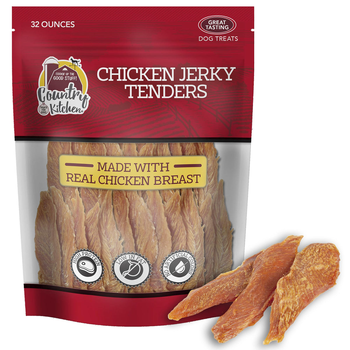 Country Kitchen Chicken Jerky Tender Dog Treats, Made with Real Chicken, High Protein, Low Fat, No Artificial Colors, 32 oz