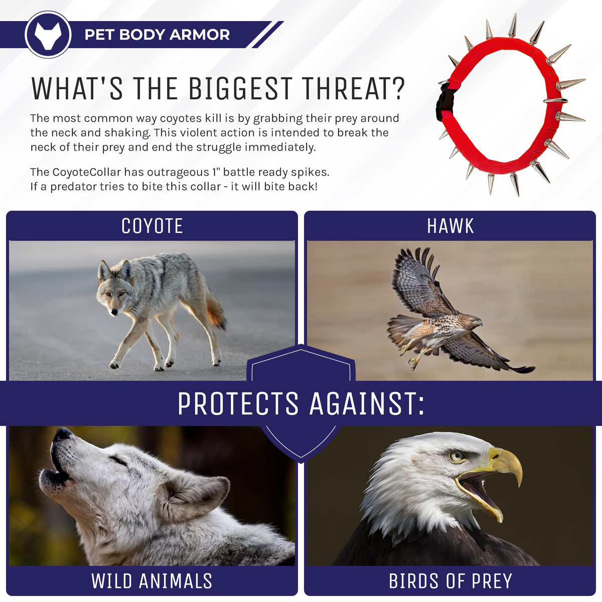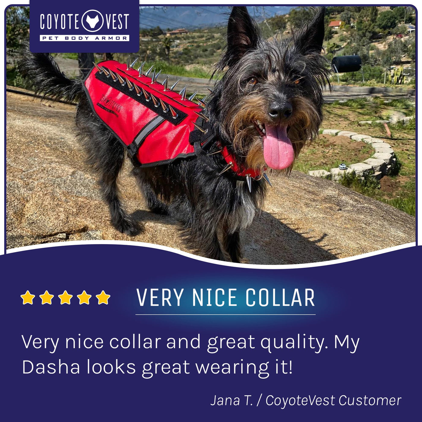 Discover The Perfect Blend Of Style And Safety With The Coyotecollar Spiked Dog Collar. Designed Specifically For Medium And Small Dogs, This Collar Features Large Chrome Spikes That Help Protect The Neck In Case Of An Attack. Ideal For Pet Owners Seeking A Durable And Fashionable Spike Collar For Dogs Or Cats, This Collar Is A Must-Have For Your Furry Friend.&Nbsp;The Collar Design Helps Deter Other Animals From Violently Grabbing Your Pets Neck Which Is The Area Most Frequently Targeted By Coyotes And Aggressive Dogs During An Attack. The 1'' Chrome Plated Spikes Are Made From Very Hard Plastic And They'Re Not Dangerous To Handle, But With Enough Pressure They'Re Sharp Enough To Hurt.&Nbsp;Crafted Entirely From Lightweight Waterproof Materials, The Spiked Dog Collar For Dogs Ensures Longevity And Comfort. The Adjustable Design Allows For A Secure And Comfortable Fit, Making It Suitable For Various Breeds, Including Those Needing A Spiked Dog Collar For Small Dogs. With Its Unique Studded Style, This Collar Stands Out, Making It A Smart Fashionable Choice For Any Outing. The Easy To Clean Materials Ensure The Collar Can Continue Looking Great Even In Harsh Conditions.&Nbsp;Not Just Stylish, The Dog Collar With Spikes Offers Practical Benefits For Pet Owners Concerned About Safety. The Spike Collar For Small Dogs, Medium Dogs And Large Dogs, Offers A Reliable And Time Tested Solution To An Ancient Problem. The Thoughtful Design Of The Coyotecollar Protect The Neck In Unexpected Attack. Whether You'Re At Home Or Away, This Dog Spike Collar Provides Protection And Peace Of Mind Anytime Anywhere.&Nbsp;Choose The Coyotecollar Spiked Dog Collar To Let Your Pet Express Their Personality While Improving Their Safety. With This Collar, Your Dog Can Enjoy Their Adventures With Confidence And Flair. Make Smart Choice For Your Furry Companion Today, And Give Them The Gift Of Style And Security With This Exceptional Spiked Collar For Dogs!