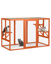 Description Give Your Cat A Vibrant Outdoor Retreat With The Cozivvovv Orange Outdoor Catio. This Straightforward Wooden Outdoor Pet Enclosure Combines Durable Fir Construction And Rust-Resistant Galvanized Wire Mesh (0.6Mm Thickness), Ideal For Patios, Balconies, Or Backyard Use. The Classic Asphalt Roof (31.5''L X 24''W) Provides Rain Protection, While The Bright Orange Finish Adds Cheerful Visibility In Outdoor Spaces. Three Sturdy Platforms (15''L X 11''W) Offer Climbing And Lounging Areas For 1-2 Cats. Key Features ?? Simple Safety Basic Latch Door With Manual Lock Smooth Wire Edges To Prevent Paw Injuries ?? Weather-Resistant Uv-Resistant Orange Paint Coating Galvanized Mesh Withstands Humidity ??? Practical Design Same-Day Assembly With Pre-Drilled Holes Compatible With Standard Outdoor Furniture Anchors Technical Specs Color: Solid Orange Frame: Fir Wood Mesh: Galvanized Steel Dimensions: 71''L X 31.5''W X 44''H Weight: 50.7 Lbs
