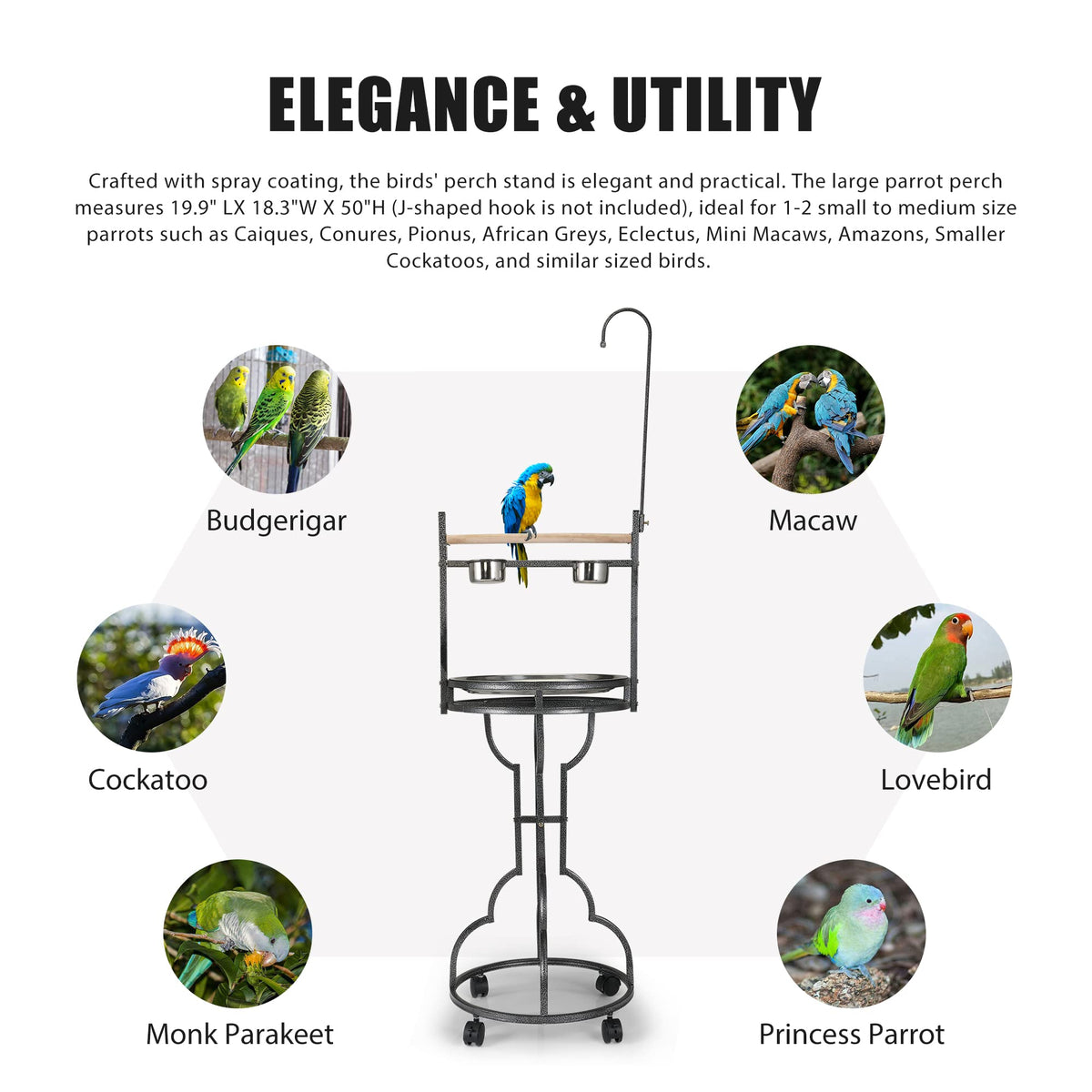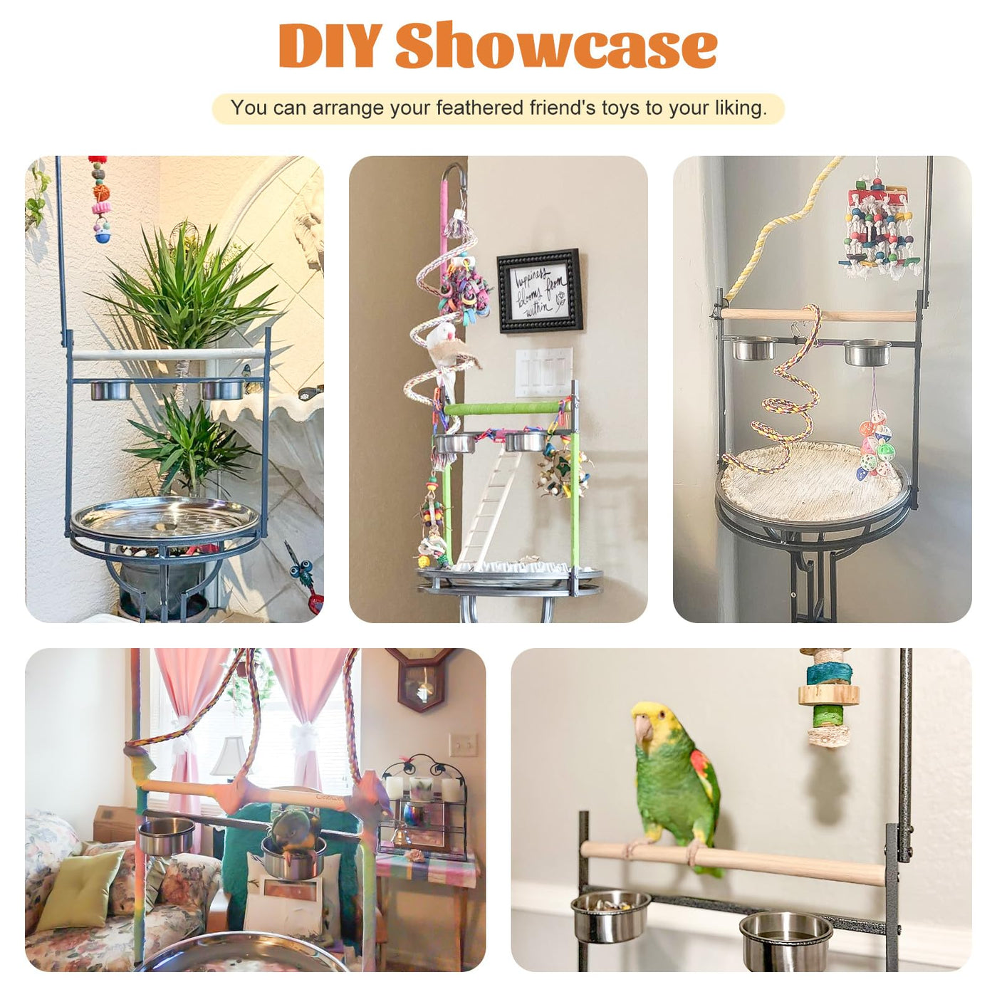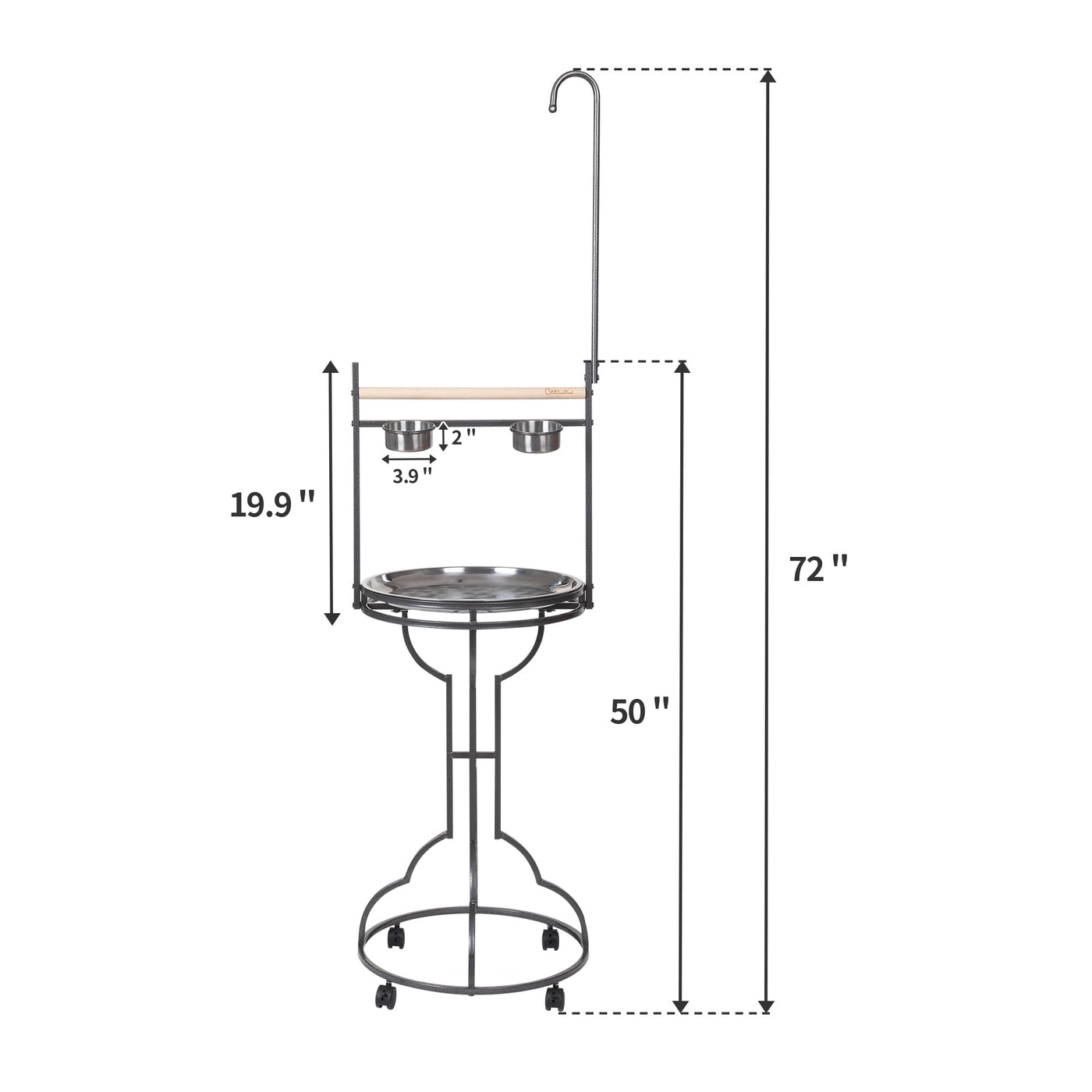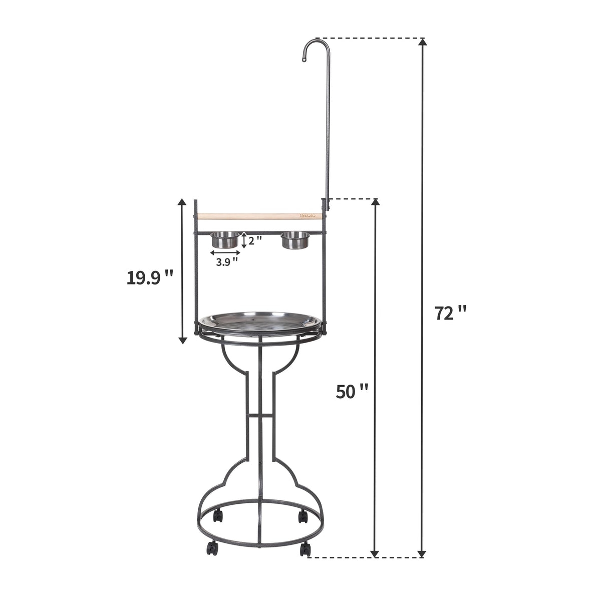COZIWOW 72 Parrot Stand,Stainless Steel Tray Bowls Large Bird Playstand,Parrot Perch with Easy Grip,Wrought Iron Bird Stand with