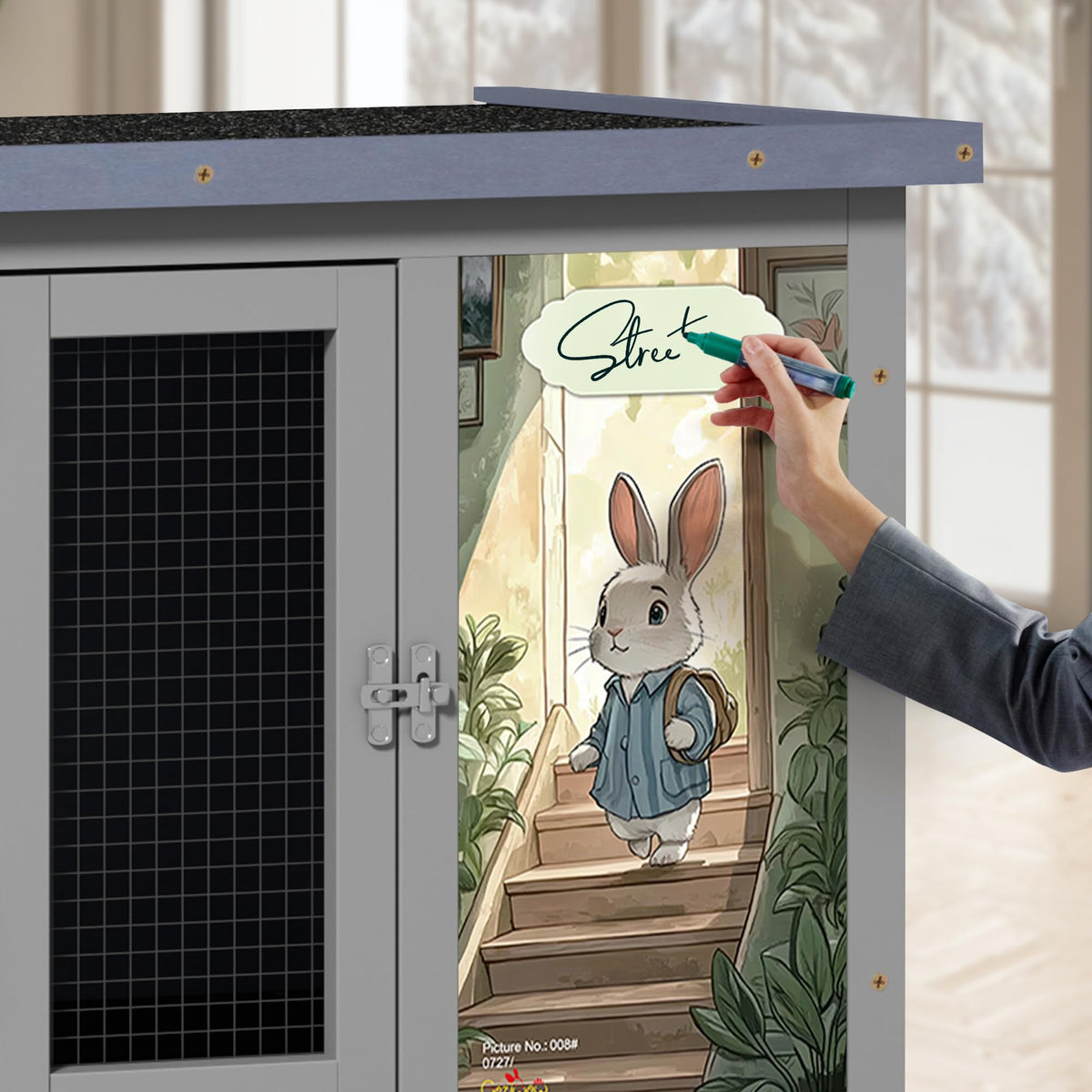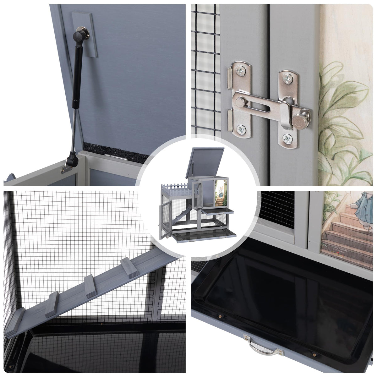Our Wooden Bunny Hutch Indoor Is Made Of Pine, Asphalt, Multi-Layer Board, Galvanised Wire Mesh, The Overall Size Is 38.2 Inches Long, 23.6 Inches Wide, 36.2 Inches High, The Bunny Cage Indoor Has A Total Of Two Floors, The Ground Floor Is For The Activity Space, The First Floor Is For The Lounge, The Bottom Of The Hutch Has A Plastic Tray, Which Can Be Used To Clean The Animal'S Feces And Rubbish, And The Interior Comes With A Slide, Which Is Easy For The Animals To Move Back And Forth Between The First And First Floors, There Are Also Two Doors That Can Be Opened And Closed, At The Same Time, To Ensure Their Safety. The Rabbit House Indoor Is Equipped With Wire Mesh In One Circle And Two Doors That Can Be Opened And Closed, Which Is Convenient For The Animals To Go In And Out And, At The Same Time, Ensure Their Safety. The Top Of The Cage Is Fenced So That On Sunny Days, The Animals Can Lie On The Balcony In The Sun, Which Is Very Comfortable And Warm. The Top Can Also Be Opened, Which Is Not Only Breathable But Also Convenient To Put Things Inside The Rabbit Enclosure Indoor. If You Have Any Questions, Feel Free To Contact Us, We Will Be At Your Service 24 Hours A Day.
