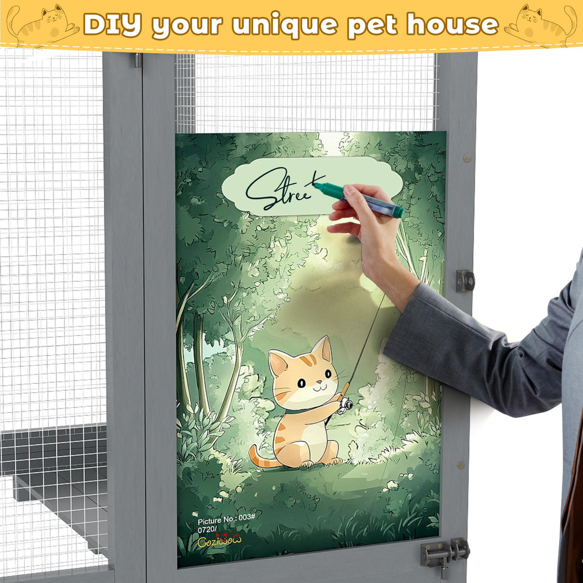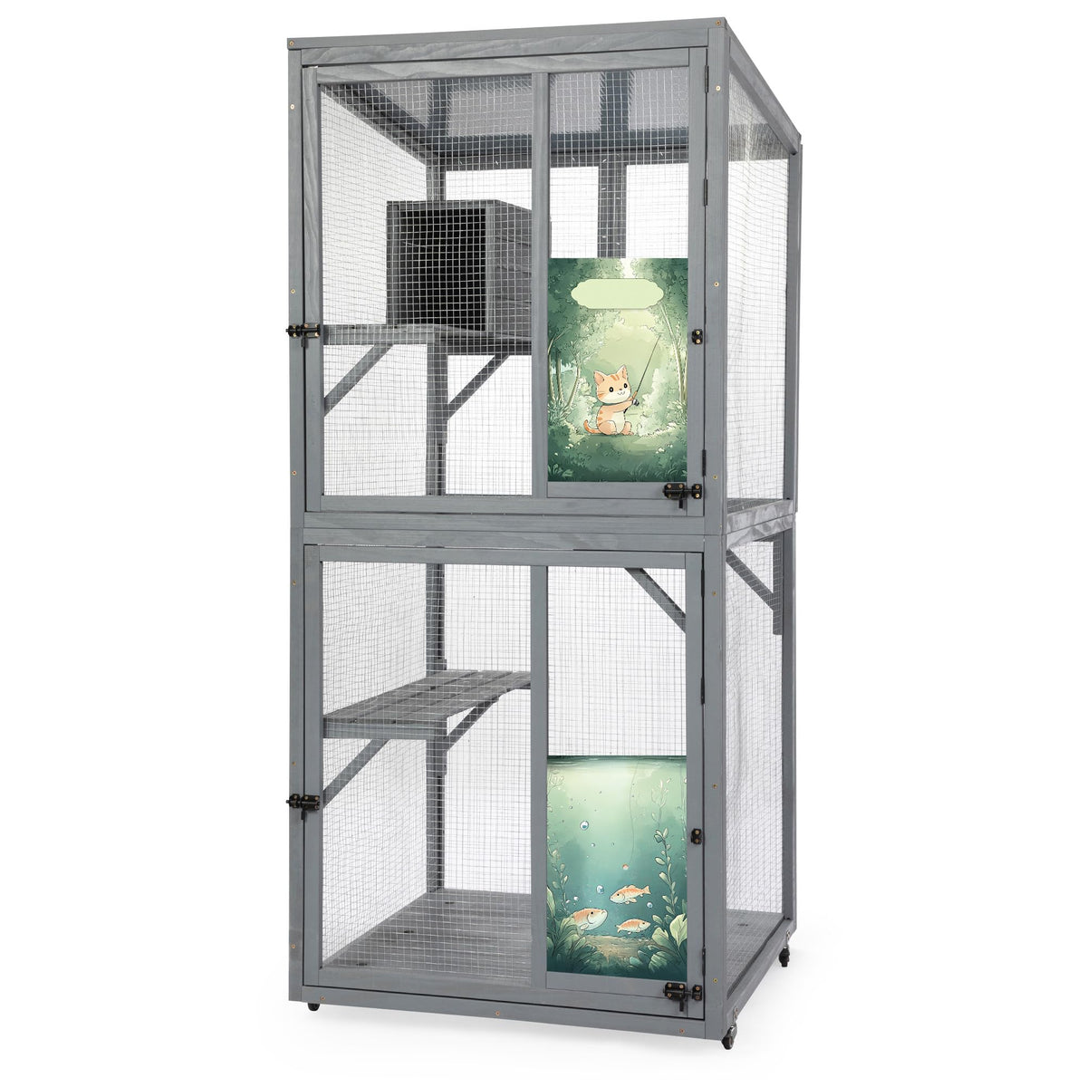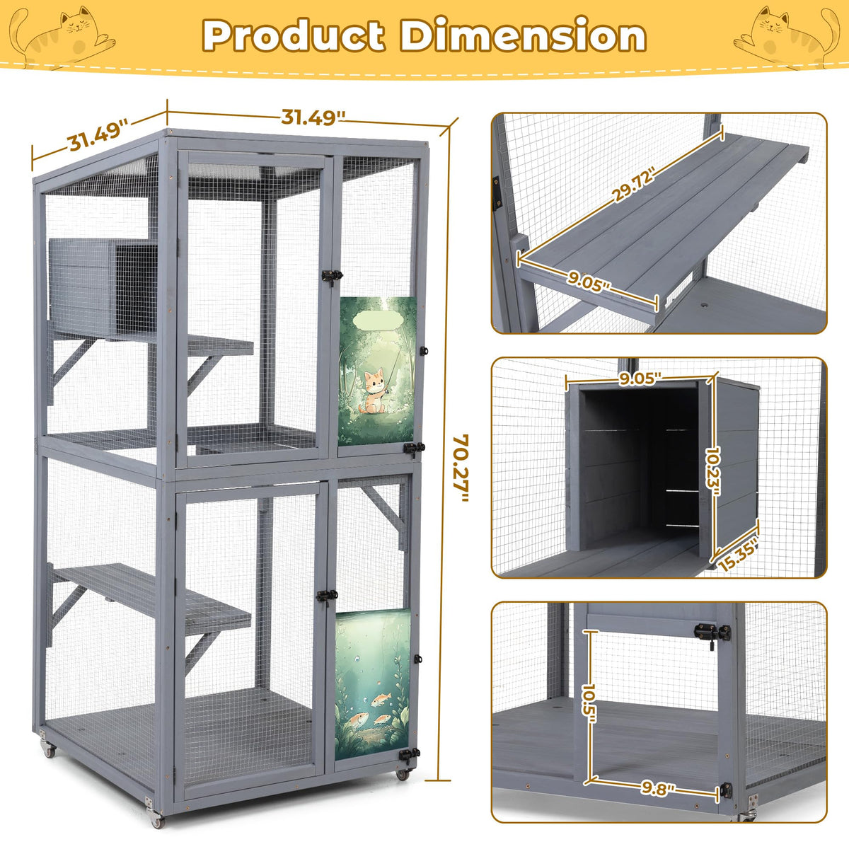 Description:Your Beloved Cats Roam Freely In The Coziwow&Nbsp;3-Tier Cat Enclosure, Enjoying Their Exclusive Gray Luxury Villa. Sunlight Filters Through The Spacious Sunshine Board, Casting A Warm Glow On The Jumping Platforms Where Your Cats Lazily Stretch, Basking In The Cozy Warmth Of The Sun. When Dusk Falls Or The Weather Changes, This Multifunctional Cat House Offers A Safe Haven. With A Gentle Push, The Enclosure Can Be Effortlessly Moved To Any Desired Spot, Whether It'S A Cozy Indoor Corner Or The Fresh Outdoor Air. The Coziwow Cat Enclosure Is More Than Just A Cage; It'S A Paradise For Your Pets, A Fashionable Decoration For Your Home, And The Perfect Companion For Sharing Time With Your Pets. Provide A Home Filled With Love And Care For Your Furry Friends, Choose Coziwow, And Let Love Know No Boundaries.Specifications:Color: Graymaterial: Pine Wood&Nbsp;+ Galvanized Wire Mesh&Nbsp;+ Sunshine Board&Nbsp;+ Spray Paintoverall Dimensions: 31.5''L X 31.5''W X 70.28''H&Nbsp;Sunshine Board Size: 31.7''L X 31.5''Wfront Large&Nbsp;Door Size: 27.56''L X 31.3''Hsliding&Nbsp;Door Size: 11.81''L X 9.84''Hpedal Size: 29.73''L X 9.06''Wcat Condo Dimensions: 9.06''L X 10.24''W X 15.35''H Base Plate Size: 29.92''L X 29.92''Wpedal&Nbsp;Load Capacity: 44&Nbsp;Lbsnet Weight: 45.3&Nbsp;Lbs&Nbsp;