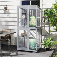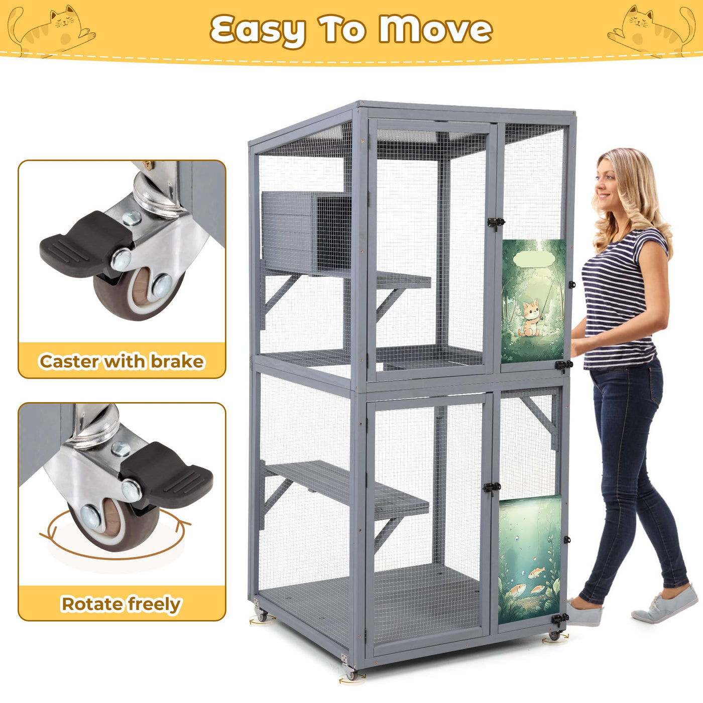 Coziwow Large Catio Outdoor Cat Enclosure Window Access, Outdoor Cat House With Wheels, Cage For Cats Indoor (Grey, Extra Large)