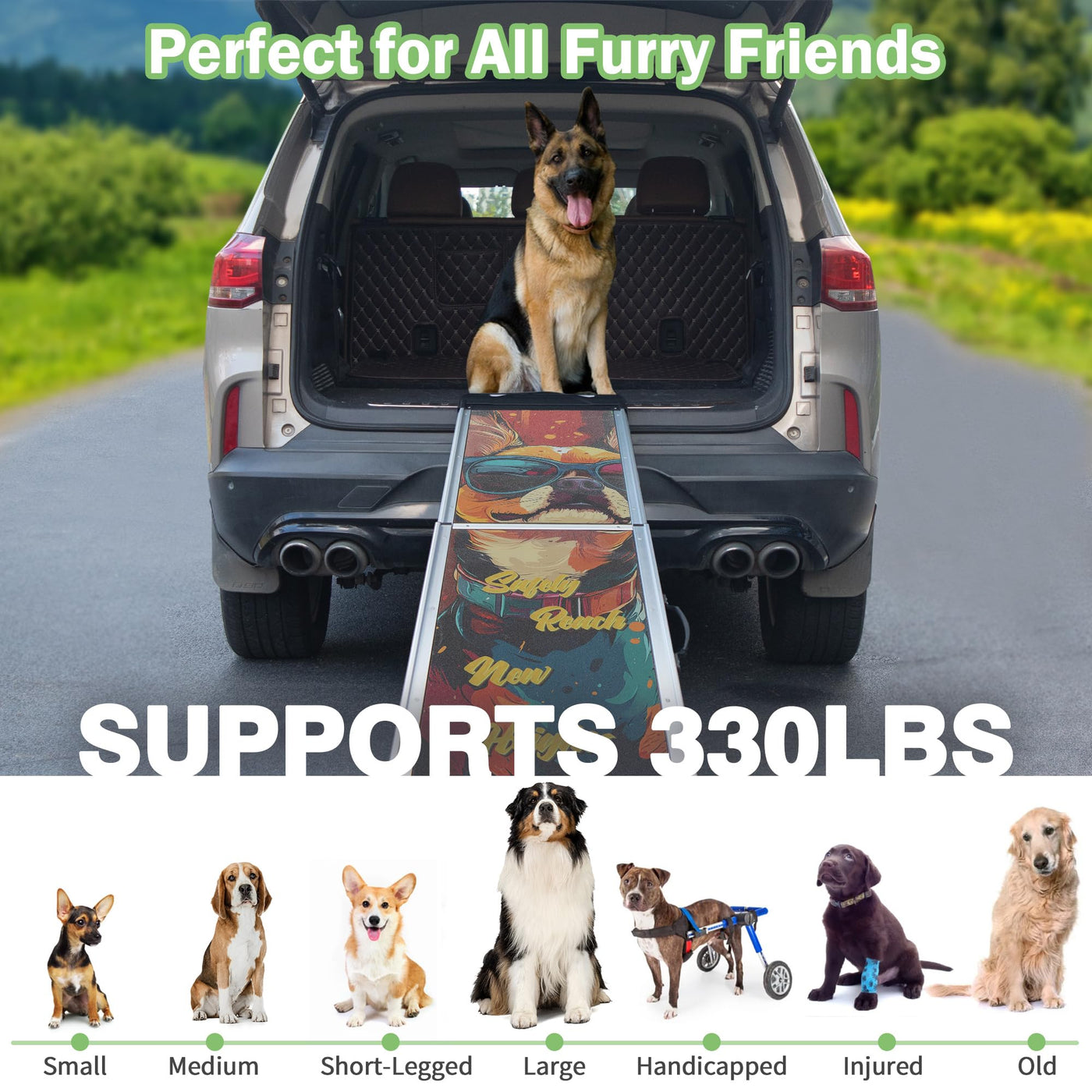 Description: Looking For A Safe And Convenient Way To Help Your Furry Friend Access Higher Places Like Cars, Beds, Or Couches? This Coziwow Retractable Dog Car Ramp Is The Perfect Solution, Combining Functionality, Portability, Safety, And Style In One. Featuring A Textured, Anti-Slip Walking Surface, The Ramp Ensures Excellent Stability, Even For Senior Or Injured Dogs. With This Telescoping Pet Ramp, You Can Say Goodbye To Lifting Your Pet And Hello To Convenience And Peace Of Mind, Making Every Adventure Easier For Your Furry Companion! Features: Vibrant And Eye-Catching Dog-Themed Patterns Make The Ramp A Unique And Stylish Addition A Must-Have Accessory Helps Pets Within 330 Lbs Get Into A Car, Suv, Truck, Couch, Or High Bed Made Of Premium Pp With Sandpaper Covering And Aluminum Alloy Edging For Durable Use Nonslip Surfaces, Anti-Slip Feet, And A Secure Strap With A Hook Provide Stability And High Traction The 2-Part Design Makes The Ramp Retractable For Convenient Trunk Carry Or Space-Saving Storage A Safety Lock To Secure The Retracted Ramp To Prevent Accidental Slipping During Transport Specifications: Color: Colorful With Dog Pattern Main Material: Pp + Aluminum Alloy + Sandpaper Expanded Dimensions: 63.58L X 16.73W X 2.2H Retracted Dimensions: 37.4L X 16.73W X 2.2H Max. Weight Capacity: 330 Lbs Net Weight: 14.77 Lbs Package Includes: 1 X Retractable Dog Ramp 1 X User Manual