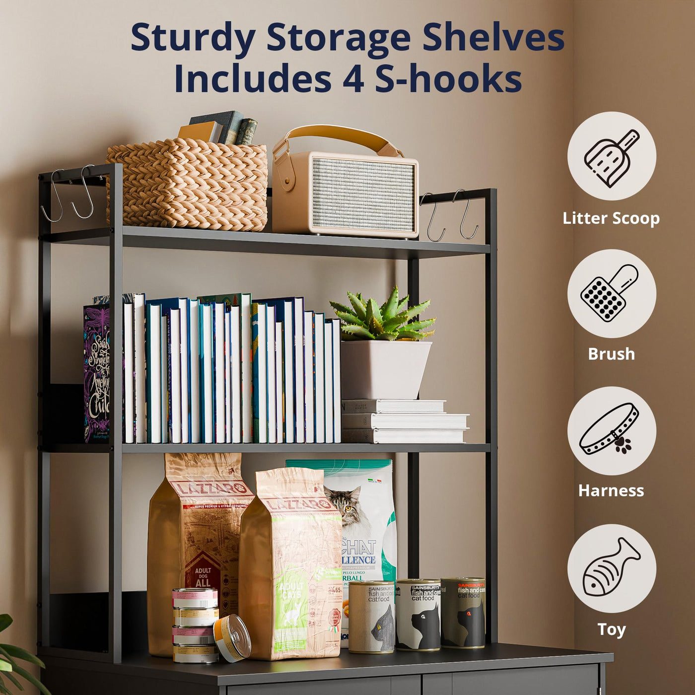 Cozy Castle Litter Box Enclosure, 57' Cat Litter Box Furniture With Large Cabinet, Shelves And 4 S-Hooks, Hidden Cat House For