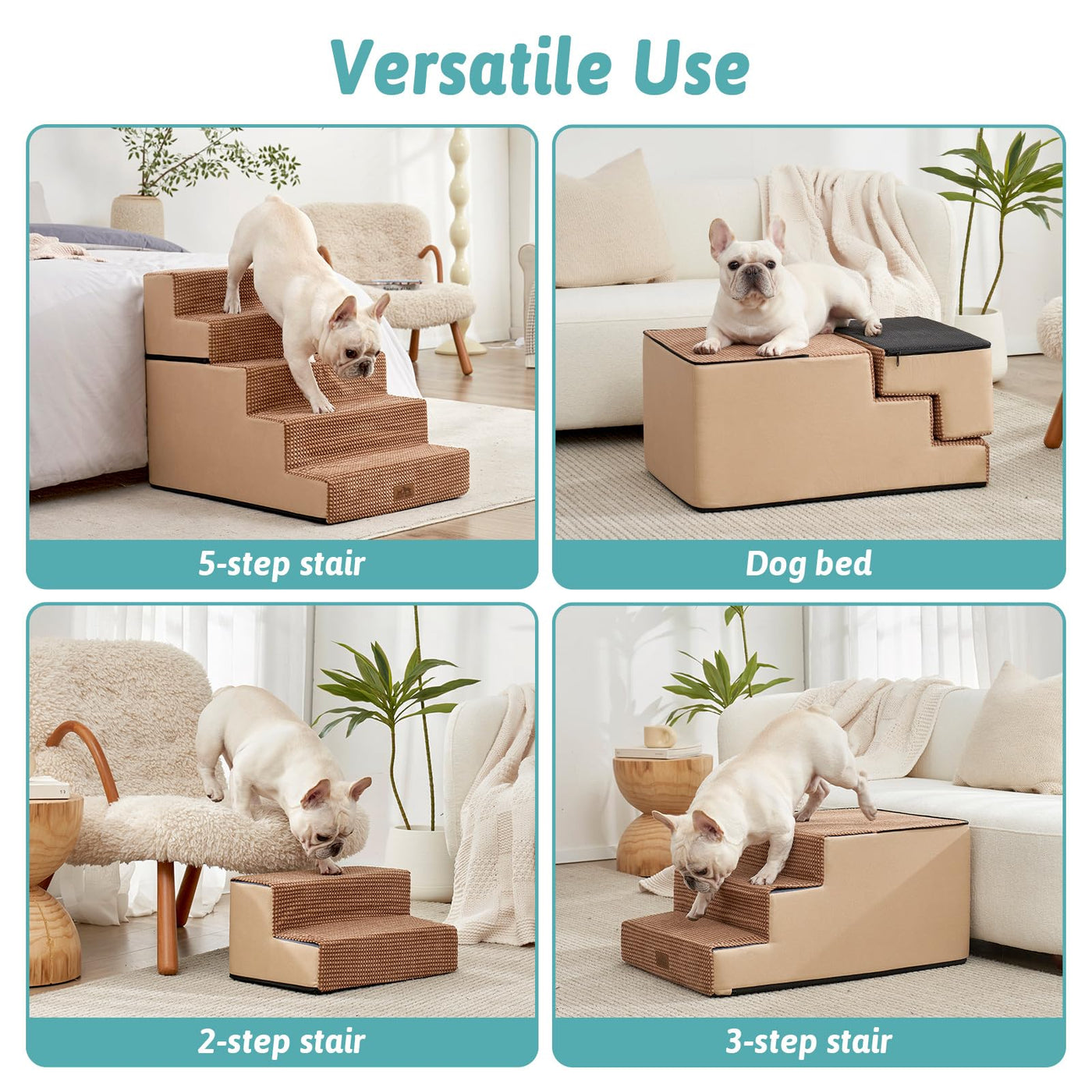 Cozy Kiss Dog Stairs For Small Dogs, 5 Tier Removable Wider Pet Stairs For Couch And Bed, 23.6'' H Non-Slip Dog Steps For Puppie