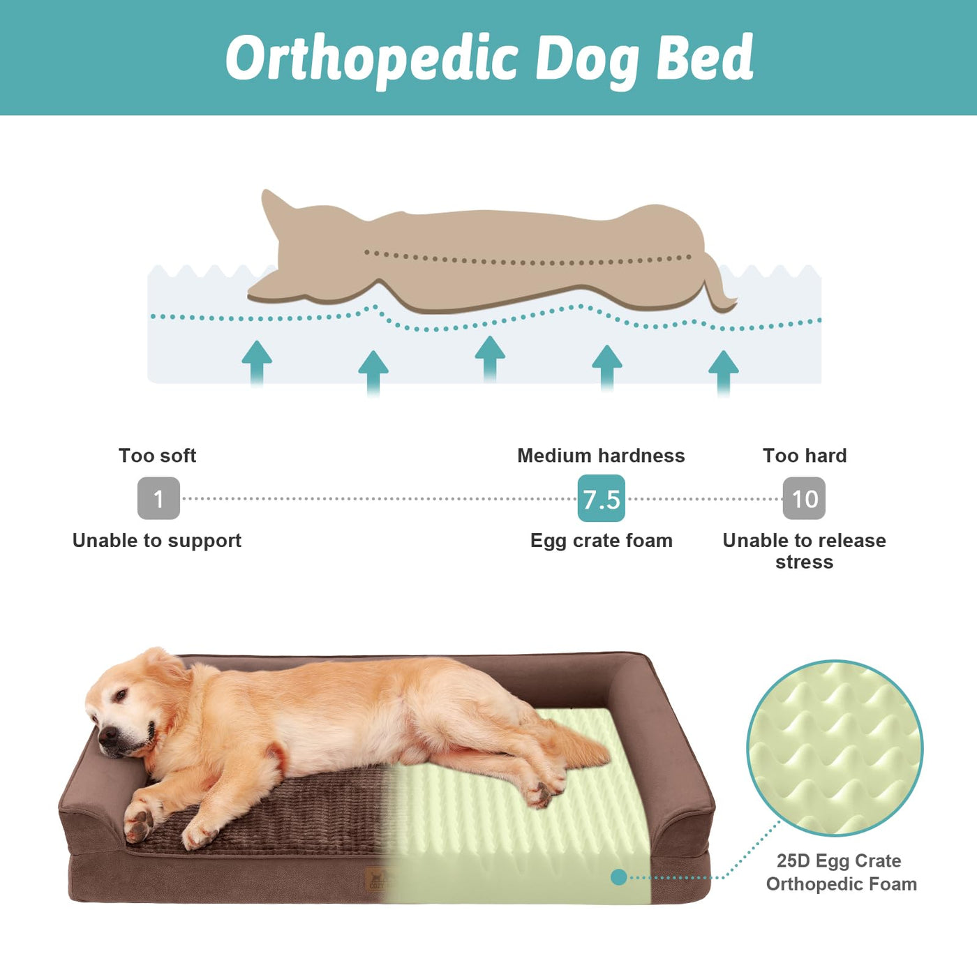 Cozy Kiss Orthopedic Dog Bed For Extra Large Dog, Xl Pet Couch For Xlarge Dog, Supportive Foam Bolster Sofa With Waterproof Lini