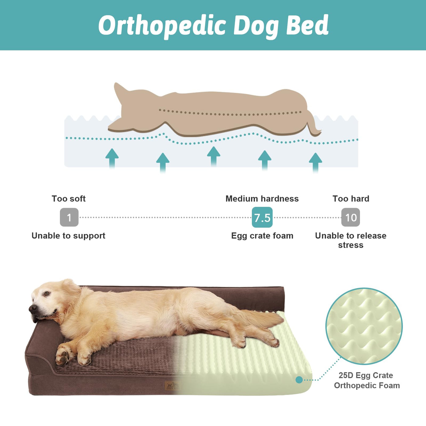 Cozy Kiss Orthopedic Dog Bed For Large Dog, Pet Couch For Medium Dog Cat, Big Supportive Foam Bolster Sofa With Waterproof Linin