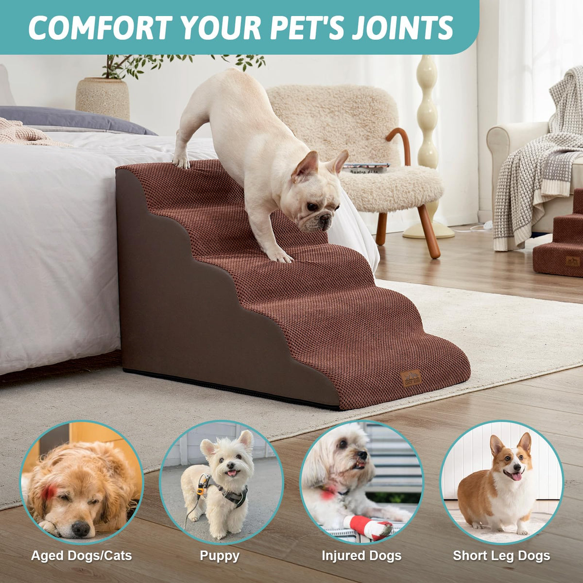 Cozy Kiss Wide Dog Stairs For Large Dogs 19.7'' Width, Dog Step For Small Dog, Puppy Or Cat, Medium Pet Ramp For High Bed Or Car