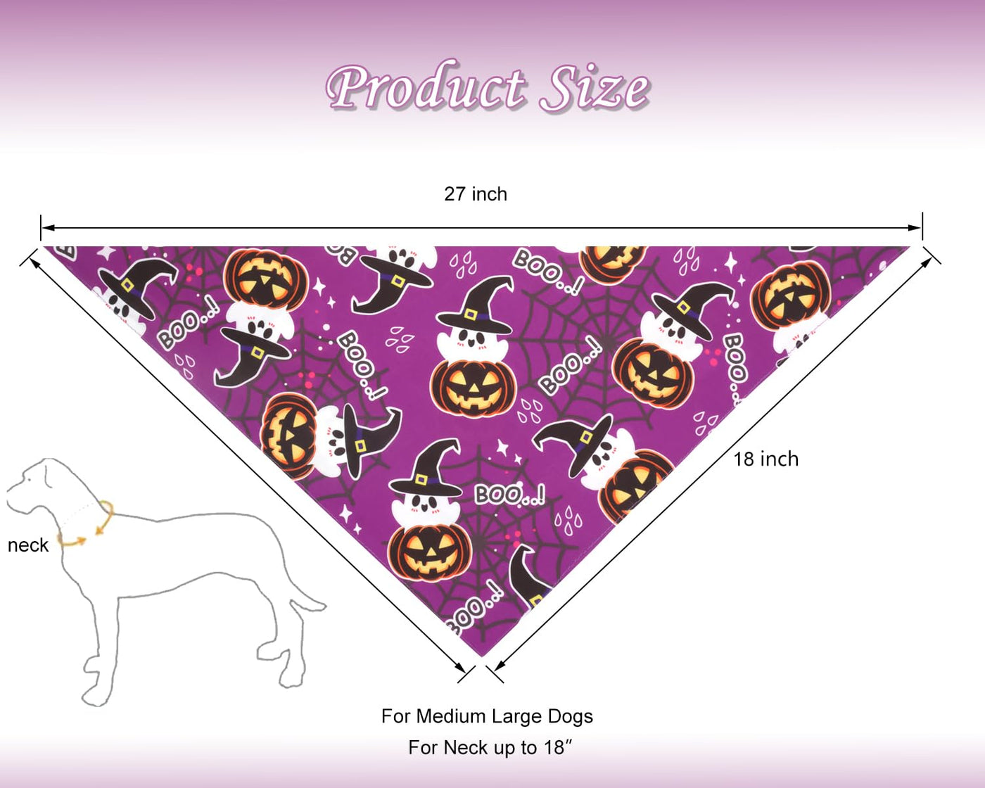 CozyHaus Halloween Dog Bandanas,Pumpkin and Cute Ghost Pet Scarf,Seasonal Outfit for Boy and Girl Dogs,Reversible Holiday Dog Costume for Medium to Large Dogs(2PCS,Purple,Black&White)