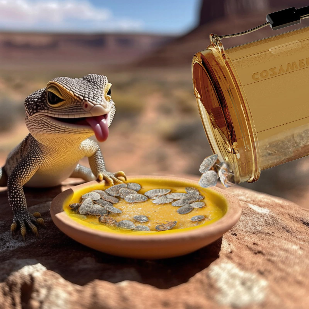 Give your scaly friends the nutrition they deserve with the most effective cricket calcium powder mixer on the market. Designed by reptile enthusiasts for reptile enthusiasts, our premium dusting container solves the common frustrations of messy, uneven supplement coverage. The specialized design features a precision-engineered mesh screen that evenly distributes calcium powder, vitamins, and gut-loading supplements onto feeder insects with just a few gentle shakes. No more clumping, wasted supplements, or inadequately dusted prey! Perfect for bearded dragons, leopard geckos, chameleons, crested geckos, and all insectivorous reptiles, this 8 oz container handles daily feeding needs with ease. The wide-mouth opening accommodates all sizes of feeder insects from small crickets to larger dubia roaches. Our durable, BPA-free construction ensures years of reliable use, while the secure twist-lock lid prevents accidental spills. The transparent design lets you monitor the dusting process, ensuring perfect coverage every time. Maintenance is a breeze - the container fully disassembles for thorough cleaning, preventing bacterial buildup that could harm your reptiles. All components are dishwasher safe for convenient sanitizing. Elevate your reptile care routine with the most efficient dusting tool available. Your reptiles will benefit from optimal nutrition delivery, and youll appreciate the cleaner, more convenient feeding process.