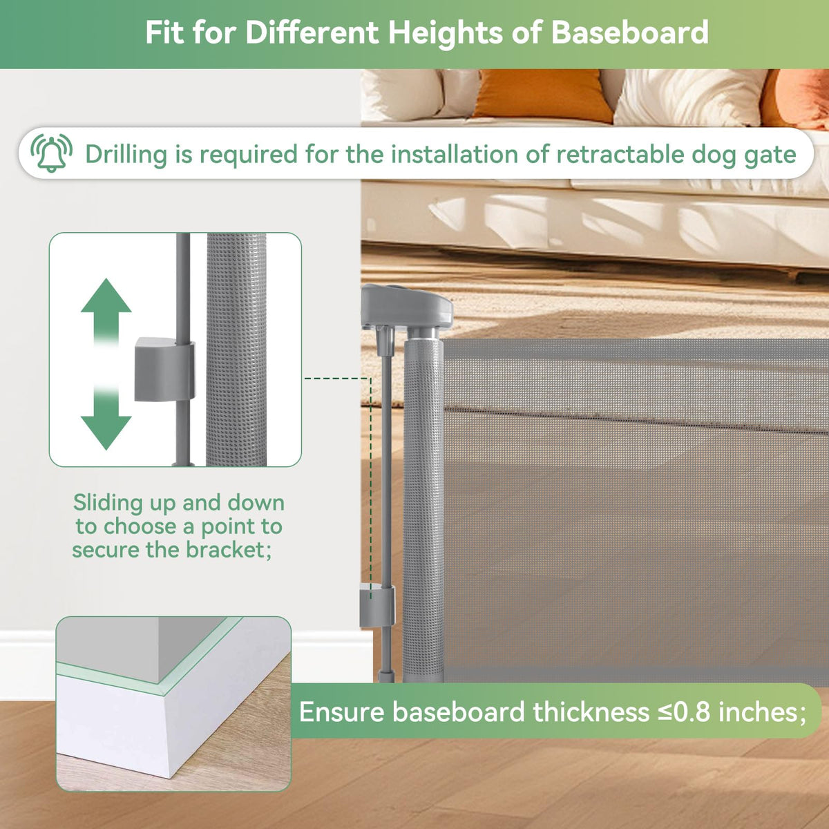 [???????? ????????] ?????? ?????????? ?????? ???????? ???????? ???? ????????, ???? ???? ???????? ??????????, ?????? ???????????????? ?????? ???????????? ???? ?????????? ????????,???????????? ?????????????? ?????? ???????? ???????? ???? ???????? ?????????? ?????? ?????? ???????? ???????? ???? ?????? (???????????????? ????????????????) | [Easily Step Over Pet Gate] As a height of 14 inch, this short dog retractable gate effectively blocks small pets while allowing adults to step over-no need to frequently open or close it. Its adjustable width up to 55 allowing it to fits for both narrow hallways and wide entrances | [Sturdy Design] This short dog gate has been designed with enhanced sturdiness and durability, addressing common issues like the pet door being prone to falling, shaking, or being damaged by pets. Its a practical and reliable solution for managing small dogs effectively | [Dogs Wont Crawling Through the Underneath] Equipped with a floor adhesive hook, the retractable dog gate effectively prevents pets from crawling underneath. The gate fits securely with no gaps between it and the floor, making it an effective and safe barrier for both dogs and cats | [Save Space] The retractable design offers a practical solution for opening and closing with ease. It saves space by eliminating the need for disassembly, making it hassle-free to store the extendable dog gate. Say goodbye to the tedious task of taking it down | [Fits Any Baseboard] This short dog gate is designed to fit any baseboard without the need for additional spacers. It features an adjustable bracket that can be slid up or down, that enables you to select the optimal installation point. This makes it versatile for use in various locations around your home | [Perfect for Puppies] This short dog gate is an excellent solution for households with multiple pets or curious little ones. It creates a secure space for your cat to eat and play without interference, ensuring a safe and harmonious environment for all