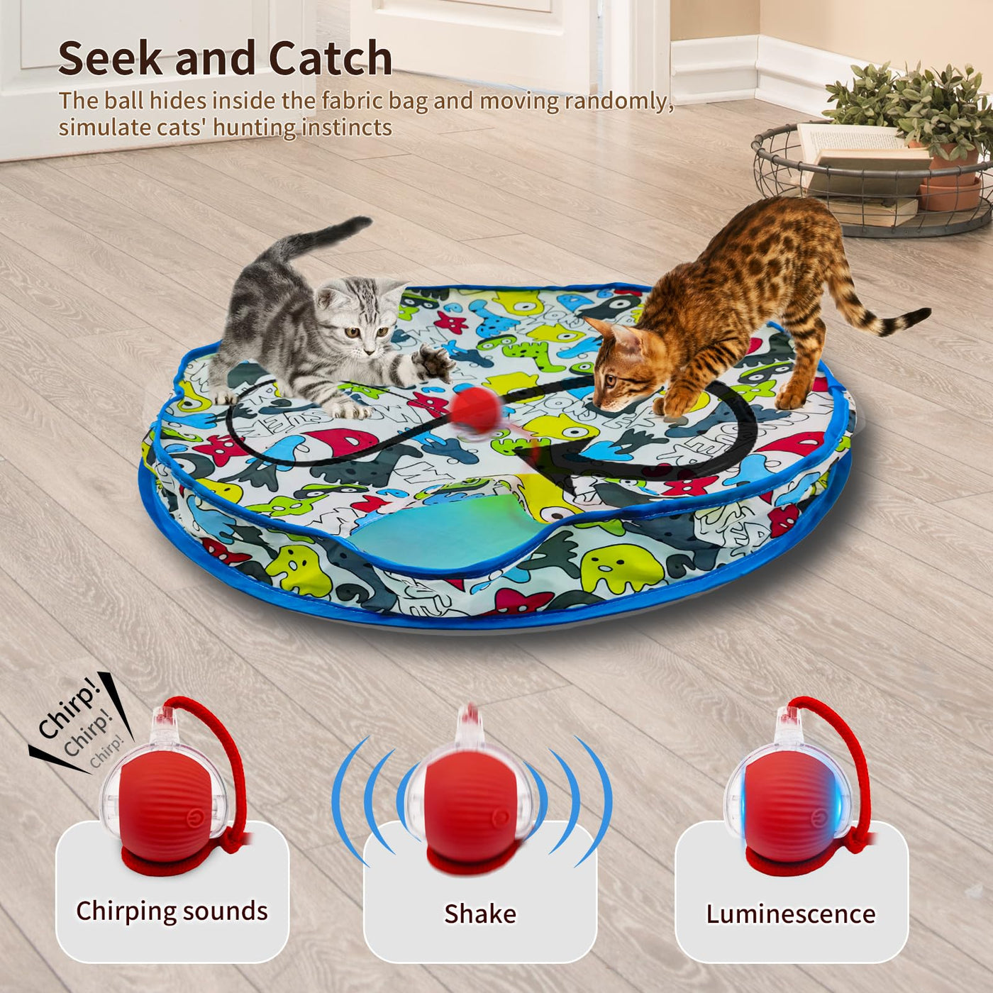 Crazydeer Interactive Cat Toy For Indoor Cat, Hide And Seek Cat Toy, Play Mat Toys With Self Rolling Ball In Pouch, Motion Activ