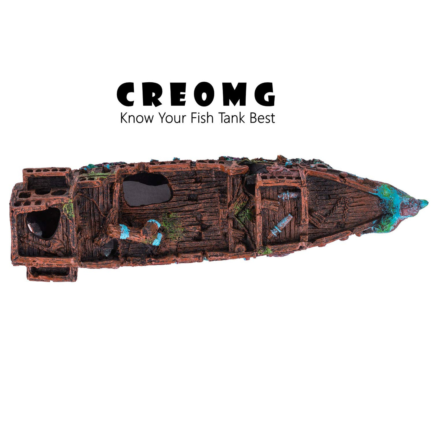 Creomg Aquarium Decorations, Aquarium Pirate Ship Decorations Fish Tank Ornaments Resin Material Shipwreck Decorations, Eco-Friendly For Freshwater Saltwater Aquarium Fish Tank Decor Sunken Ship