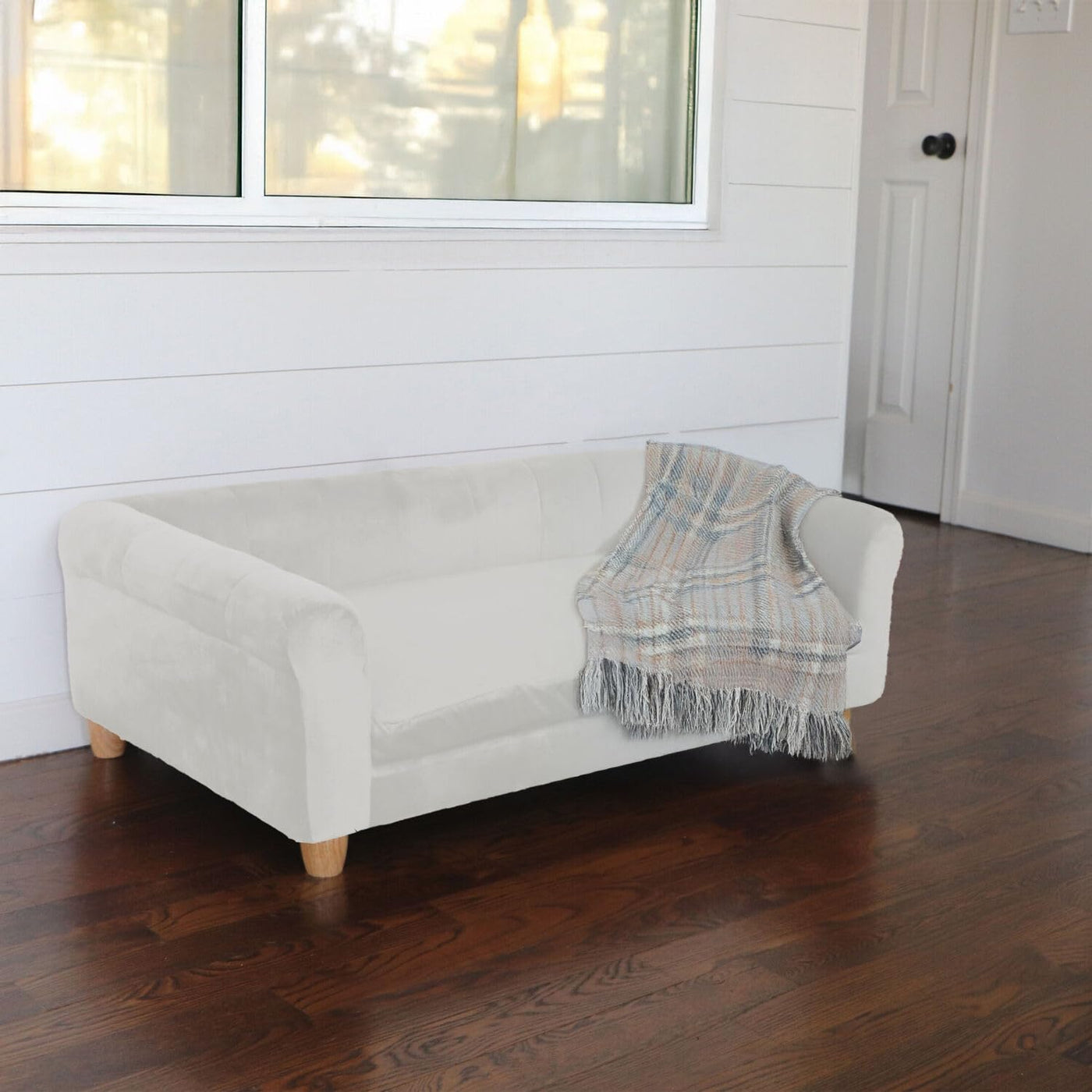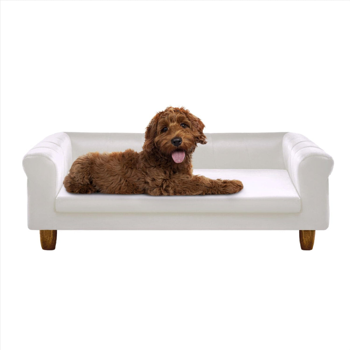 Critter Sitters 42-In. Elegant Cream Faux-Velvet Rectangular Dog Sofa For Medium And Large Dogs, Durable Elevated Dog Sofa Bed,