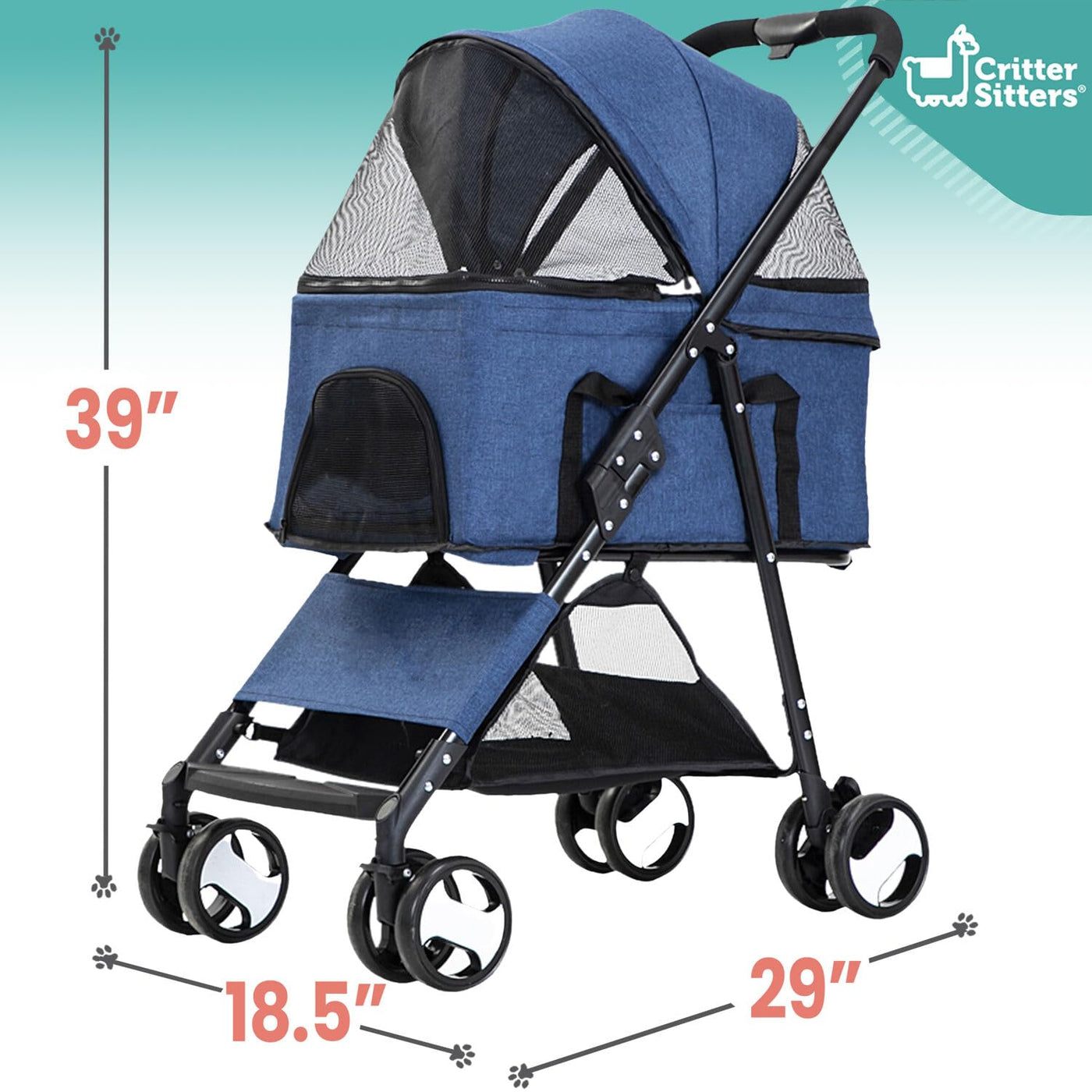 Critter Sitters Pet Stroller With Storage Basket, Single Carriage Carrier For Animals Up To 33 Lbs., 4-Wheel, Travel And Transpo