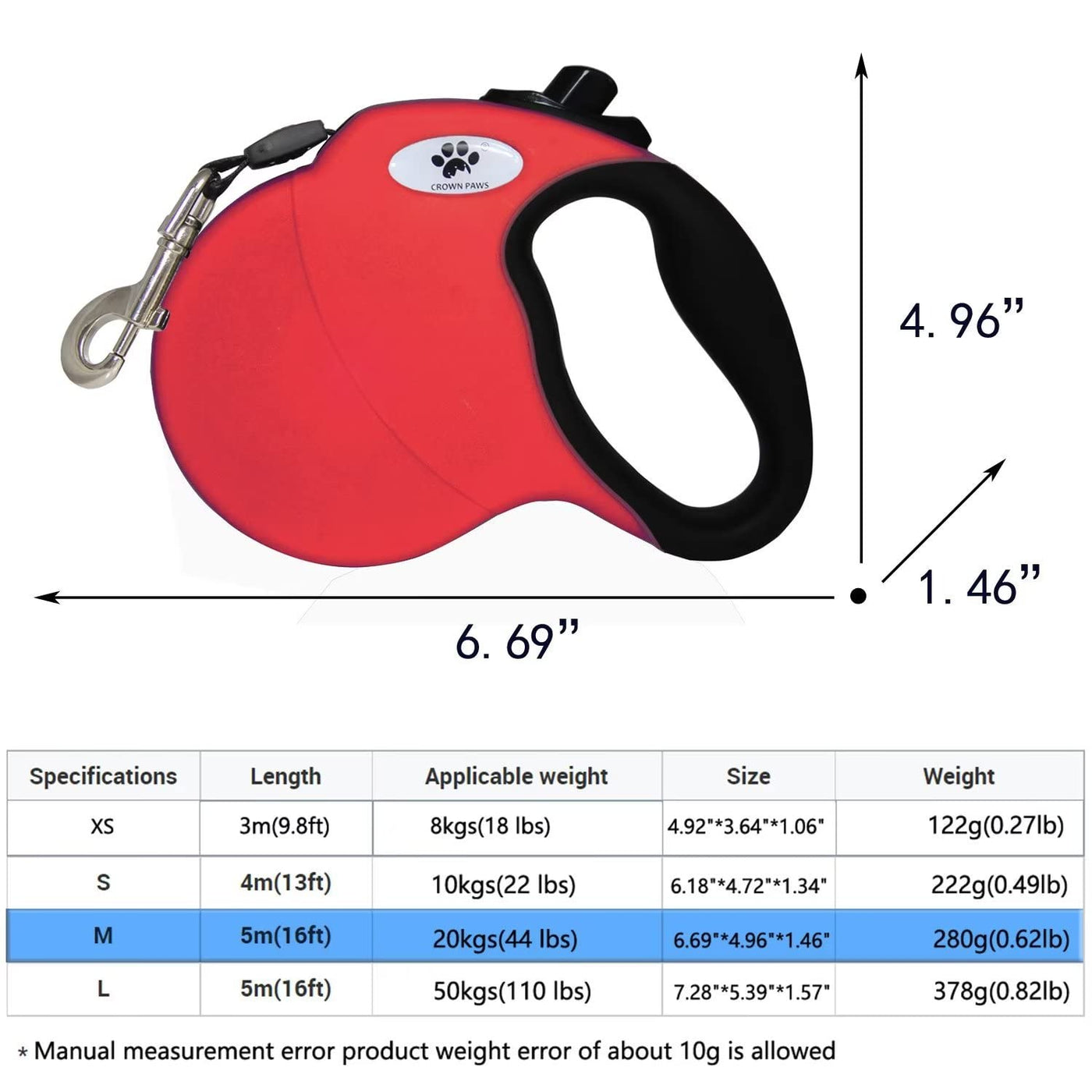 Crown Paws 16 Ft Retractable Dog Leash For Large Dogs Up To 44 Lbs,Tangle-Free Nylon Tape,Red Dan M