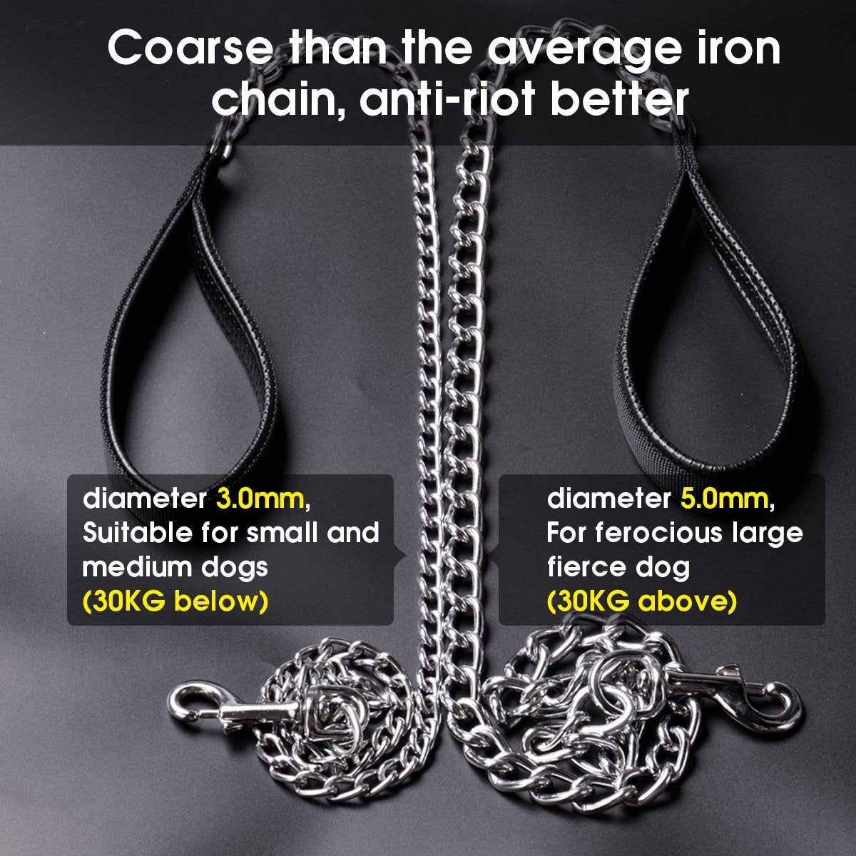 Brand Name: Ctopogo High Quality Heavy Duty Anti-Bite Metal Dog Chain Lead Pet Traction Rope Leash Training Strength, Pu Leather Handle Is Comfortable And No Rope Burn Feeling The Dog Leash Training With Preparation Of Cotton Constructed Makes It More Elegant And Stylish Perfect Craftsmanship Snap Easy And Firmly To Attach To The Lifting Ring The Dog Leash Training Is Excellent For Come Or Recall Command Training Pattern: Solid Dog Leash Designed For Puppy Large Dogs Material: Handle+Iron Chain Type: Basic Leashes Season: All Seasons