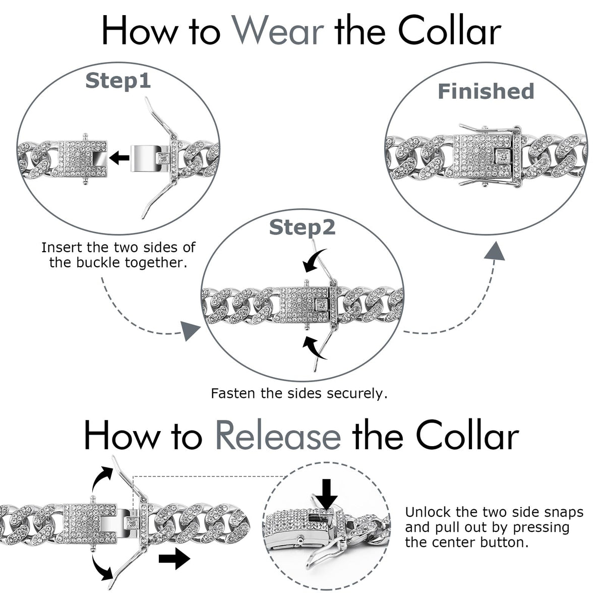 Cuban Link Silver Dog Chain Collar Design Secure Buckle Crystal Necklace Metal Jewelry Accessories For S M Small Medium Large Pe