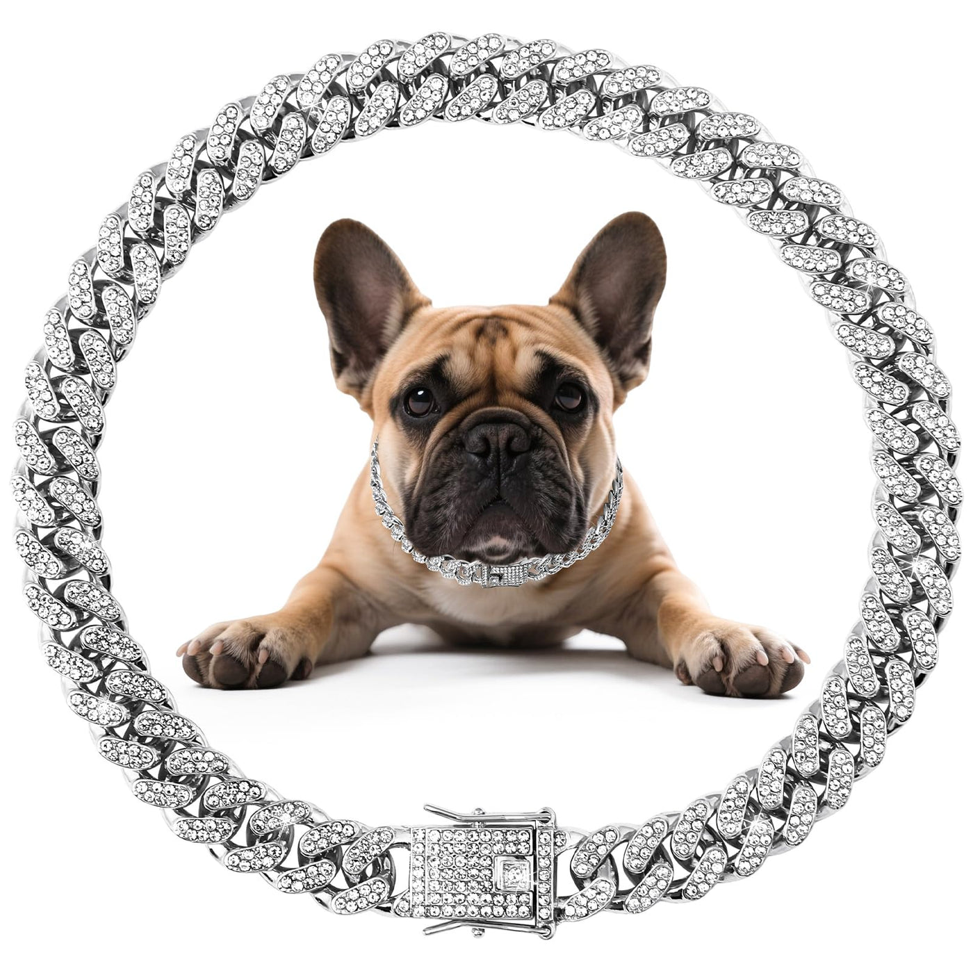 Sturdy Material:Dog Chain Collar Is Made Of Quality Zinc Alloy, With Zirconia Diamond Decoration, Stylish, Strong And Will Not Easy To Break Or Fade, And The Surface Is Smooth. Suitable Size:Color:Gold/Rosegold,Size:Chain Wide:13Mm,Length:8/10/12/14/16/18. The Dog Collar Chain Is Not Adjustable,Please Use A Soft Tool To Measure Your Pet Neck Circumference And Choose The Correct Size; If You Need Oversize Effect, Please Add 1-7 Inch On The Basis Of The Original Measurement. Exquisite Design:Our Dog Necklaces Are Wear Resistant And Not Ease To Rust With Elegant Color And Lightweight That Will Be Portable And Not Be A Burden On Your Pet'S Neck Or Influence Move Or Walking. Suitable Scenes: The Link Collar Are Suitable For Cats, Puppies Or Other Small Pets Such As Chihuahuas And Rabbits To Wear In Training, Walking, Traveling, Jogging, Or Participate Party And Celebration. Dress Up Your Pe: You Will Receive A Chain Collar For Cats With Diamonds That Can Be Applied To Dress Up Your Pets, It Can Make Your Pet Look More Cool And Handsome.