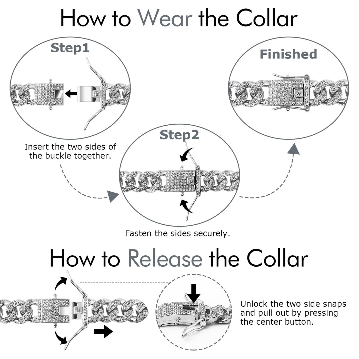 Cuban Link Silver Dog Chain Collar Design Secure Buckle Crystal Necklace Silver Dog Metal Jewelry Accessories For Small Medium L