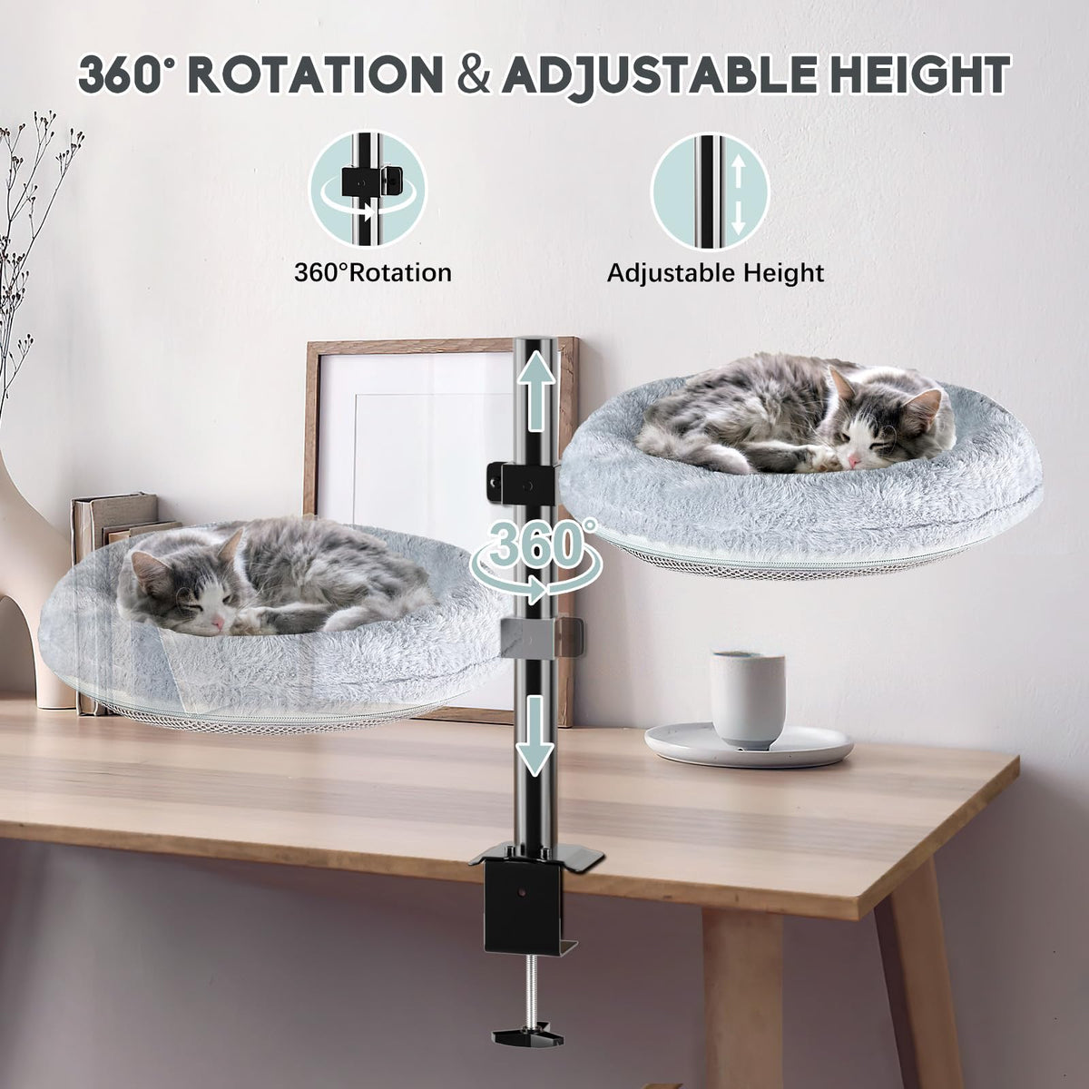 Cuipingoo Cat Bed For Desk - 360 Rotating & Adjustable, Supports Up To 40Lbs, Removable & Washable, Nest Bed Attachment Round Ca