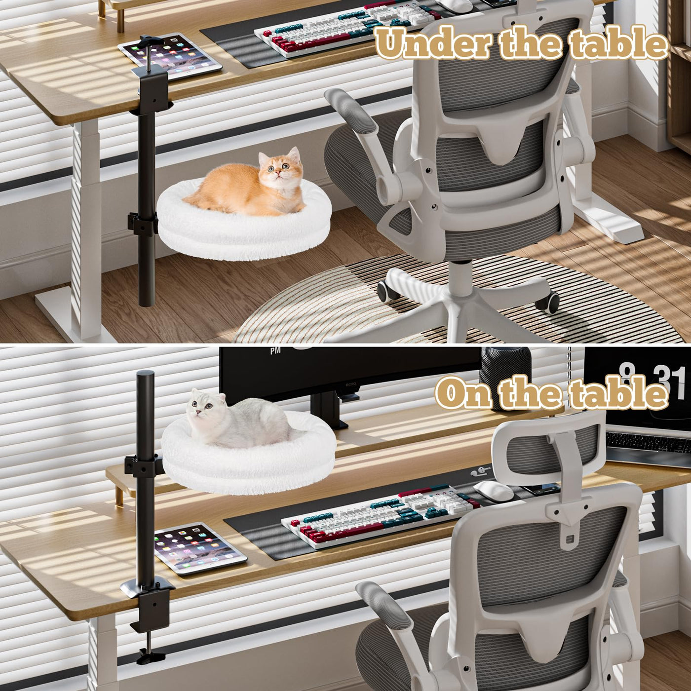 Cuipingoo Cat Desk Bed, Supports Up To 50 Lbs, Comfortable Soft Perch, Nest Bed Attachment Round Cat Hammock For Desk 360 Rotati