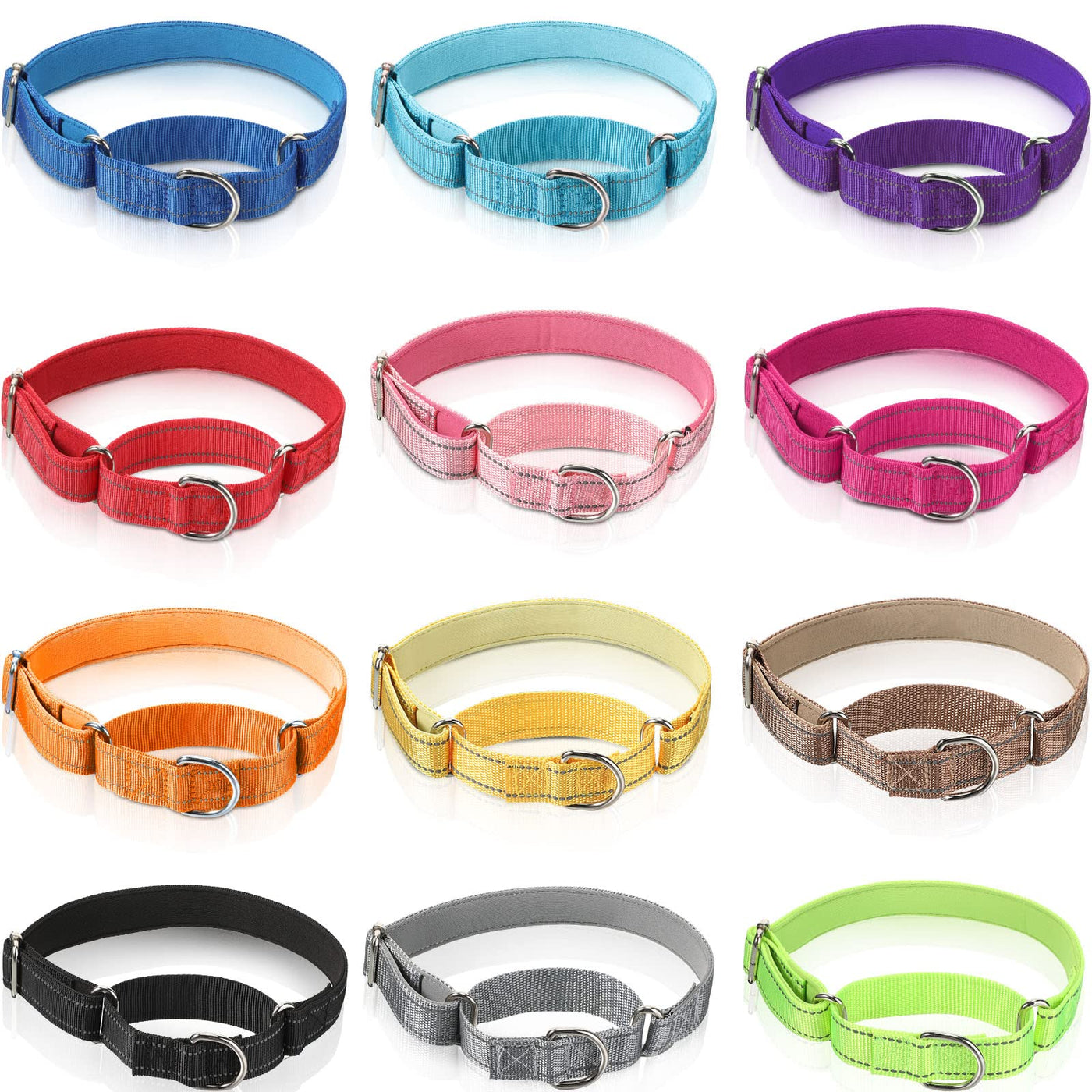Cunno 12 Pcs Martingale Collar for Medium Dogs Reflective Dog Collar with Durable Metal Buckle Adjustable Nylon Pet Prevent Slip