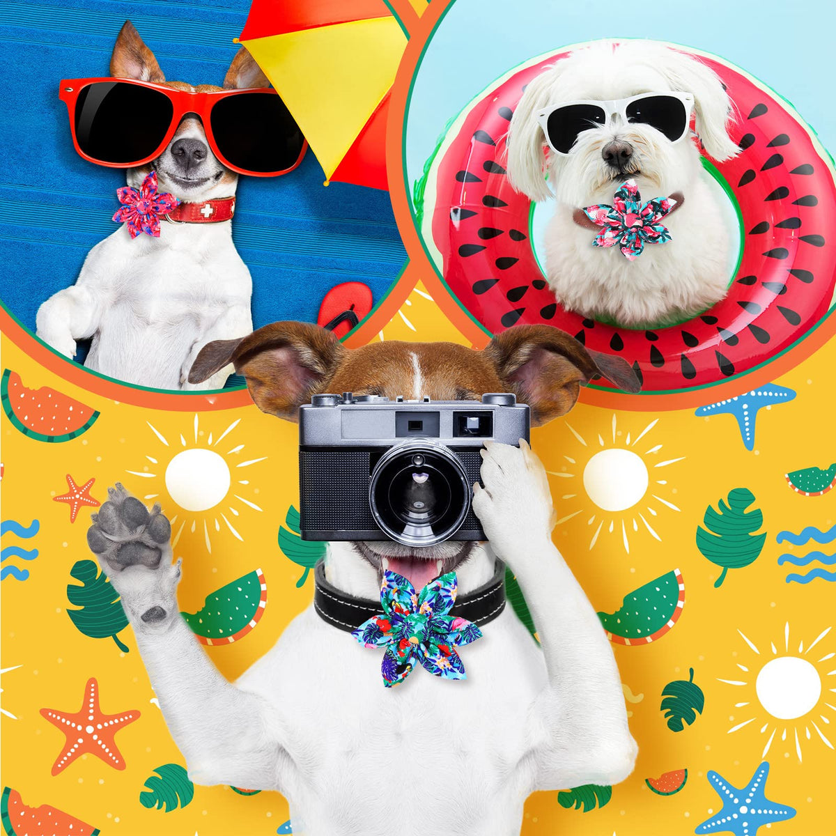 Cunno 60 Pcs Dog Collar Flowers Bulk Summer Hawaiian Dog Bow Ties Dog Collar Accessories Pet Charms Grooming Flamingo For Small