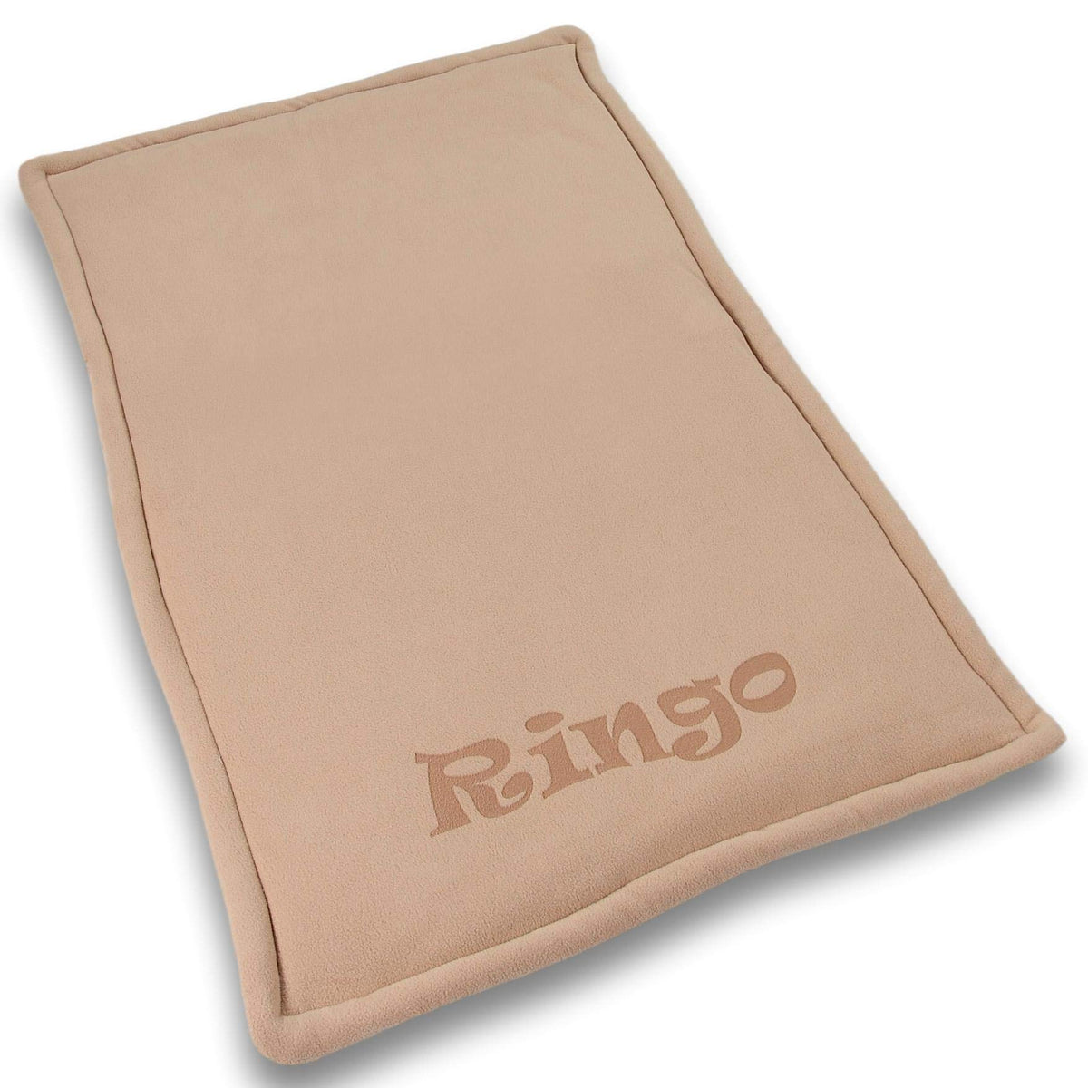 With the Custom Catch personalized dog kennel mat (xl, large or small), your dog or cat’s name will be permanently imprinted on their favorite soft, cozy place of rest and relaxation. Pick from Purple, Grey, Maroon, Beige, Blue pads and add the text you want! This dog kennel mat in large or small size is a super cute way to keep your pet happy. Select a font that shows everyone your pet's personality. This personalized dog bed or cat bed is an ideal cushion to fit crates, carriers, doghouses, window sills and other nap spots. This pet bed mat features a rectangular shape and fits most crates under 42 inches in length. This reversible bed is made from high quality fleece and has plenty of fill to provide a comfy sleeping spot for your favorite furry friend. Delivering beautifully personalized dog beds clearance priced and washable is our mission. Machine Washable – this dog bed can be machine washed. Dimensions – small size measures 15.7 x 23.6 inches. Large size measures 23.6 x 31.5 inches XL size measures 42 x 28 inches. Perfect for crates or as a standalone bed mat. Keep your dog or cat cool in the Summer, warm in the Winter. Uses - kennel, crate, carrier, vehicle, dog house or a mat on the floor. Beautifully imprinted – pet’s name in your choice of fun and original fonts. Thick hand customized cushion. A lightweight travel mat that can be rolled up and taken with you on every trip. Personalized showpiece kennel pad has a softness that pets gravitate to. Colors help hide shedding, while giving you the options to match your home décor. A 100% polyester fill cushion offers superb support underneath your pet's body and is particularly soothing for stiff joints. The Custom Catch personalized dog and cat kennel mat creates a welcoming spot for your pet whether at home or spending a weekend away. Keep your pet feeling comfortable and relaxed wherever you go with the Custom Catch bed mat--because your little pal deserves nothing less than the best.