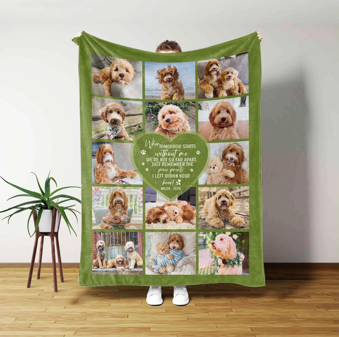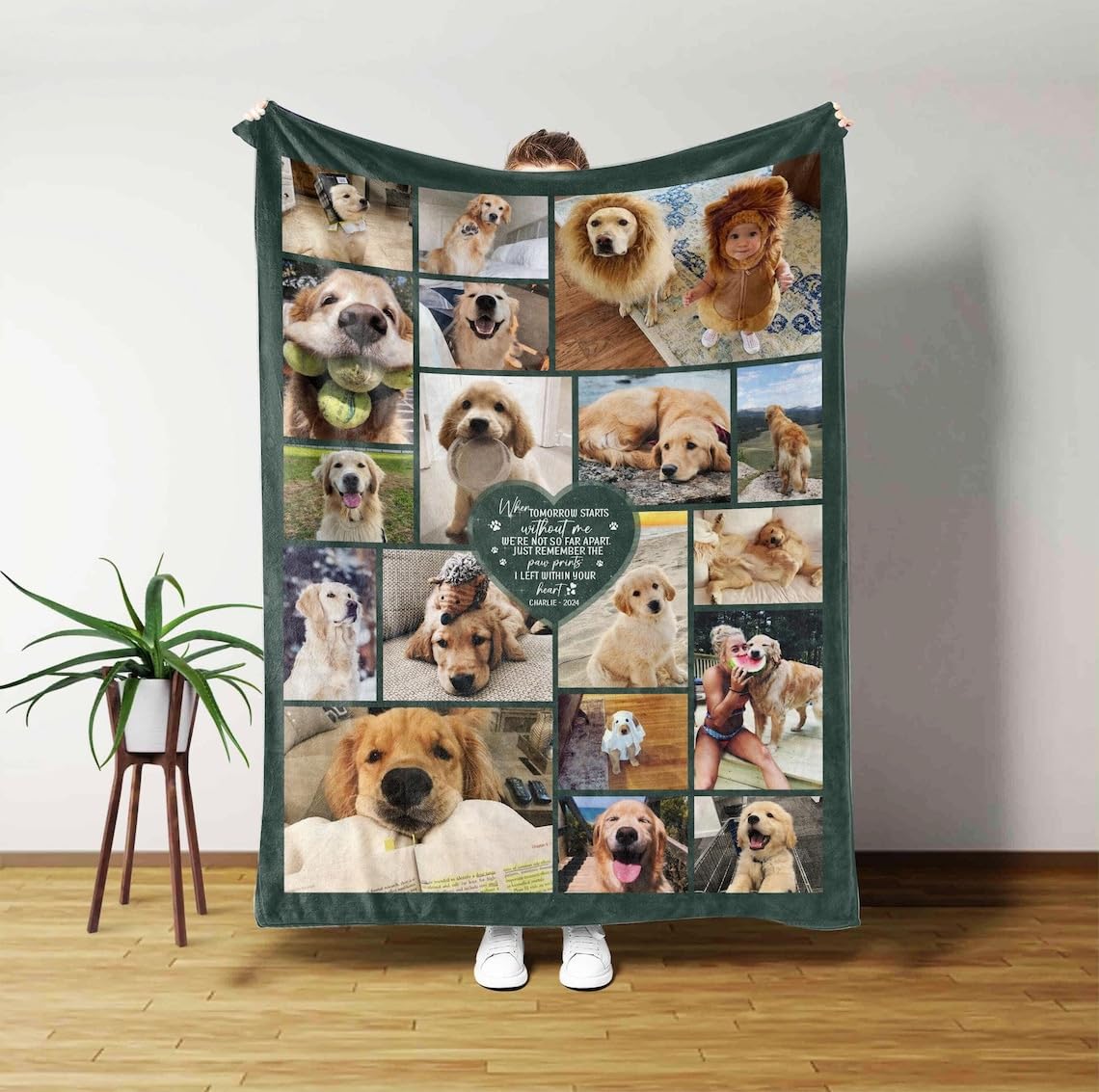 Custom Dog Photo Blanket, Personalized Pet Memorial Fleece Blanket Pet Loss, Custom Pet Photo Collage, Unique Gift For Parents P