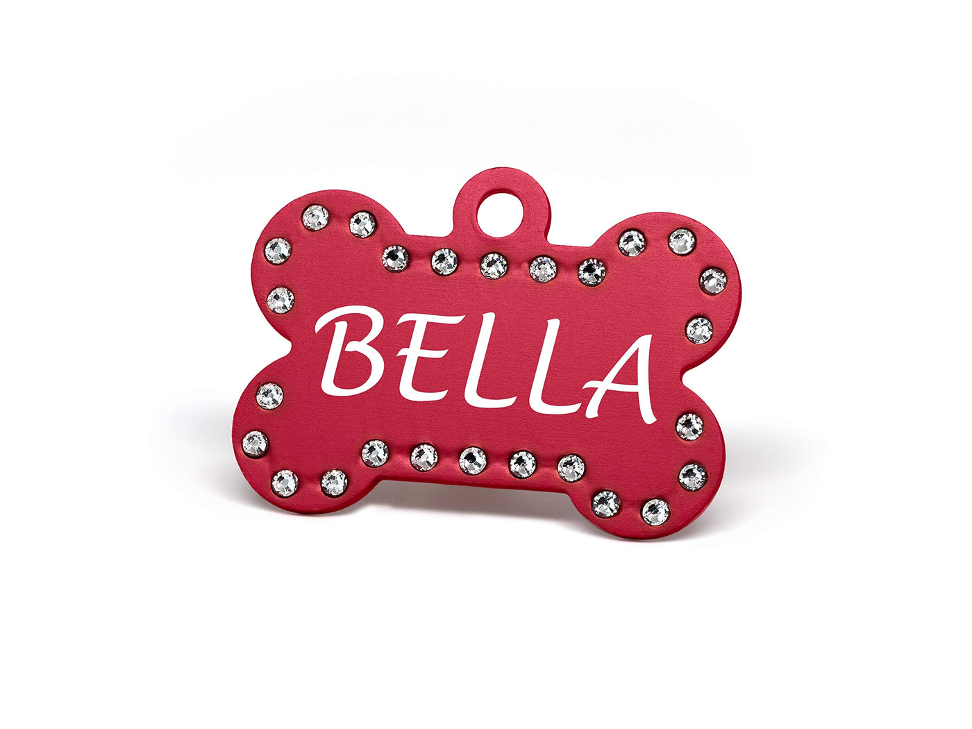 A Quality Pet Id Tag Helps Protect Your Pet In The Event You Become Separated. Just Because They'Re Functional Doesn'T Mean They Have To Look Boring. These Custom-Engraved Tags Surround Your Pet'S Name With 26 Genuine Swarovski Crystals, Perfect For Dogs With Sparkling Personalities. Measuring 1 Inch By 1.5 Inches, The Dog Tags Come In Pink, Purple, Blue, Red And Black, So You Can Choose An Option To Complement Your Pet'S Collar. The Swarovski Crystals That Accent This Tag Add Flair To Your Dog'S Collar And Catch The Eye. Each Precision-Cut Piece Of Lead Crystal Glass Is Set Into A Recessed Hole And Bonded To The Tag With An Industrial-Grade Epoxy. You Can Expect The Crystals To Stay Firmly In Place, Even When Worn By An Energetic Animal. In Addition To Sparkle, This Bling Dog Tag Comes With Features That Benefit Both Pets And Pet Owners, Including: Durable Construction: These Bone-Shaped Dog Tags Are Manufactured In The United States Using High-Quality Anodized Aluminum. The Aluminum Gives The Tag Strength And Durability While Keeping It Relatively Lightweight. Easy-To-Read Lettering: A Precision Co2 Laser Engraves Lettering Into Each Tag For Excellent Longevity. The White Text Will Stand Out Against Whichever Background Color You Choose. Compatible Split Ring: Every Tag Comes With A Compatible Metal Split Ring To Make Attaching The Tag To Your Dog'S Collar Fast And Easy. Enter Up To 16 Characters On The Front Of The Tag For Your Pet'S Name. On The Back, You Can Enter Up To Four Lines Of Custom Text, With Each Line Capable Of Holding Up To 18 Characters. Add All The Information You Need People To Know If They Encounter Your Pet. You Can Include Your Address, Phone Number And Other Helpful Information, Such As Whether Your Dog Has A Medical Condition.