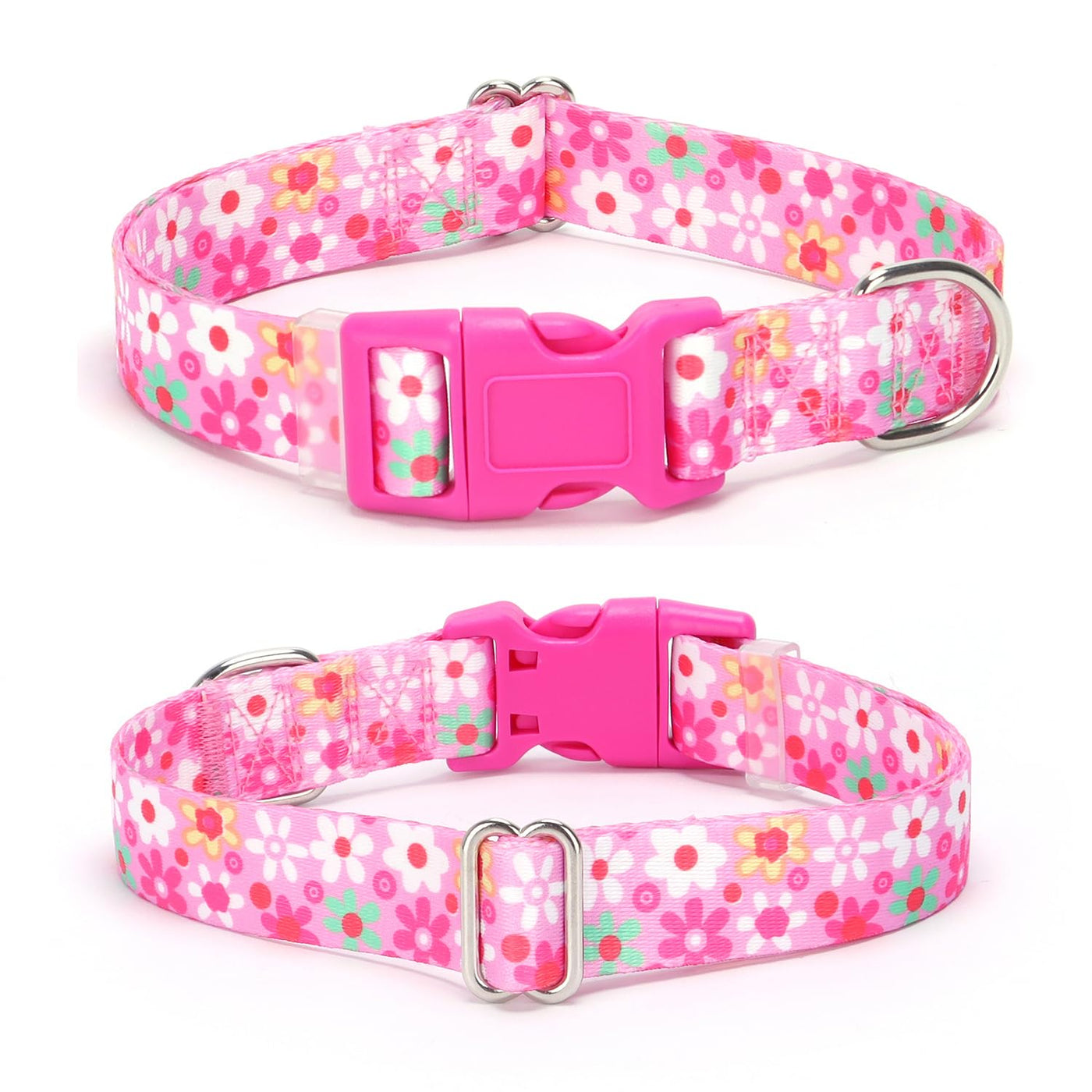 Cute Dog Collars For Female Dogs, Pretty Pattern Design Quick Release Buckle Soft Nylon Puppy Collars Adjustable For Xs Small Medium Large Pet Girl Dogs Big Cat Size: Xs Fit For Neck 7-10''( 18Cm- 27Cm), Width 3/5'' (1.5Cm) ; S Fit For Neck 10.6''- 17''( 27Cm- 43Cm), Width 3/5'' (1.5Cm) ; M Fit For Neck 12.6''- 20.5''( 32Cm- 52Cm),Width 3/4'' (2Cm) ; L Fit For Neck 15''- 24''( 38Cm- 61Cm), Width 1'' (2.5Cm) ; Xl Fit For Neck 17''- 28''( 43Cm- 71Cm), Width 1'' (2.5Cm) . Note: Please Measure Your Dog'S Neck Girth And Refer To Our Size Chart Before Ordering Comfortable Dog Collar: Woven With High Quality Polyester, Durable And Soft. Comfortable And Soft Touch Provides A Comfortable Wearing Experience For Dogs Comfortable & Stylish: Unique, Vivid, And Stylish Patterns Designed With Your Dogs Comfort And Style In Mind, From Teacups To Giant Breeds, Boy Dogs Or Girl Dogs, We Have A Special Collar Pattern That Will Show Your Pets Unique Personality. Easy To Use: Our Collars Are Durably Constructed With An Easy Click, Strong Buckle, Weatherproof D Ring And High Density Nylon. Our Soft And Flexible Collars Are Dog Approved - They Are Super Comfortable, As Well As Long Lasting. Washable By Hand Or On Gentle Cycle.