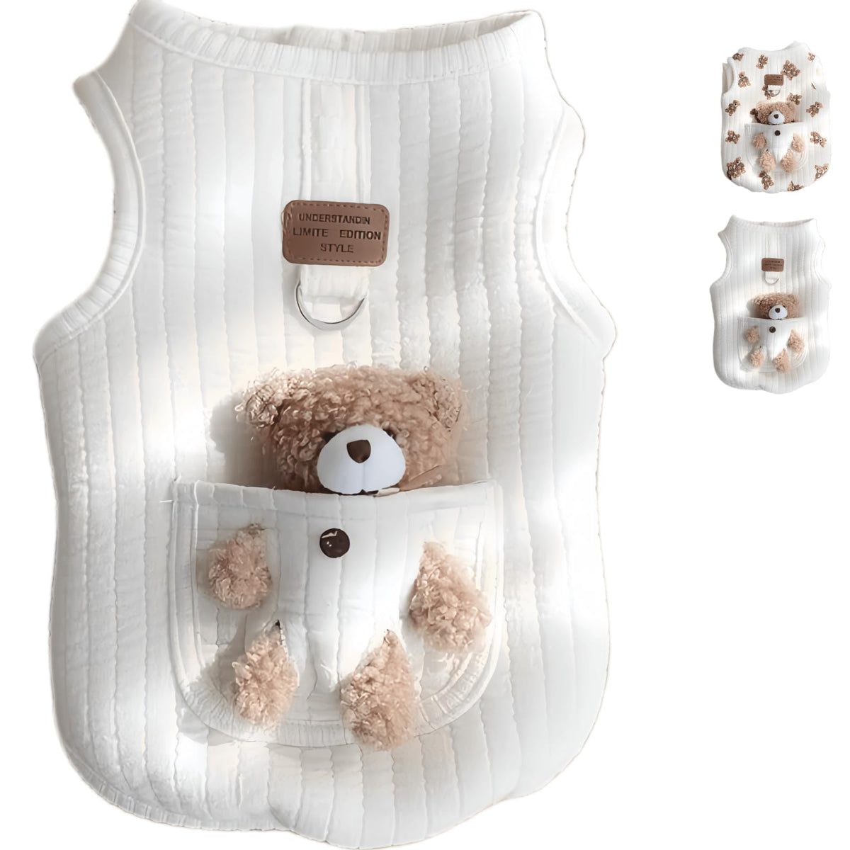 Cute Pet Apparel Plush Bear Pattern Cartoon Dog Clothes All Season Sleeveless Puppy Kitten Pullover Soft Skin-Friendly (White1,