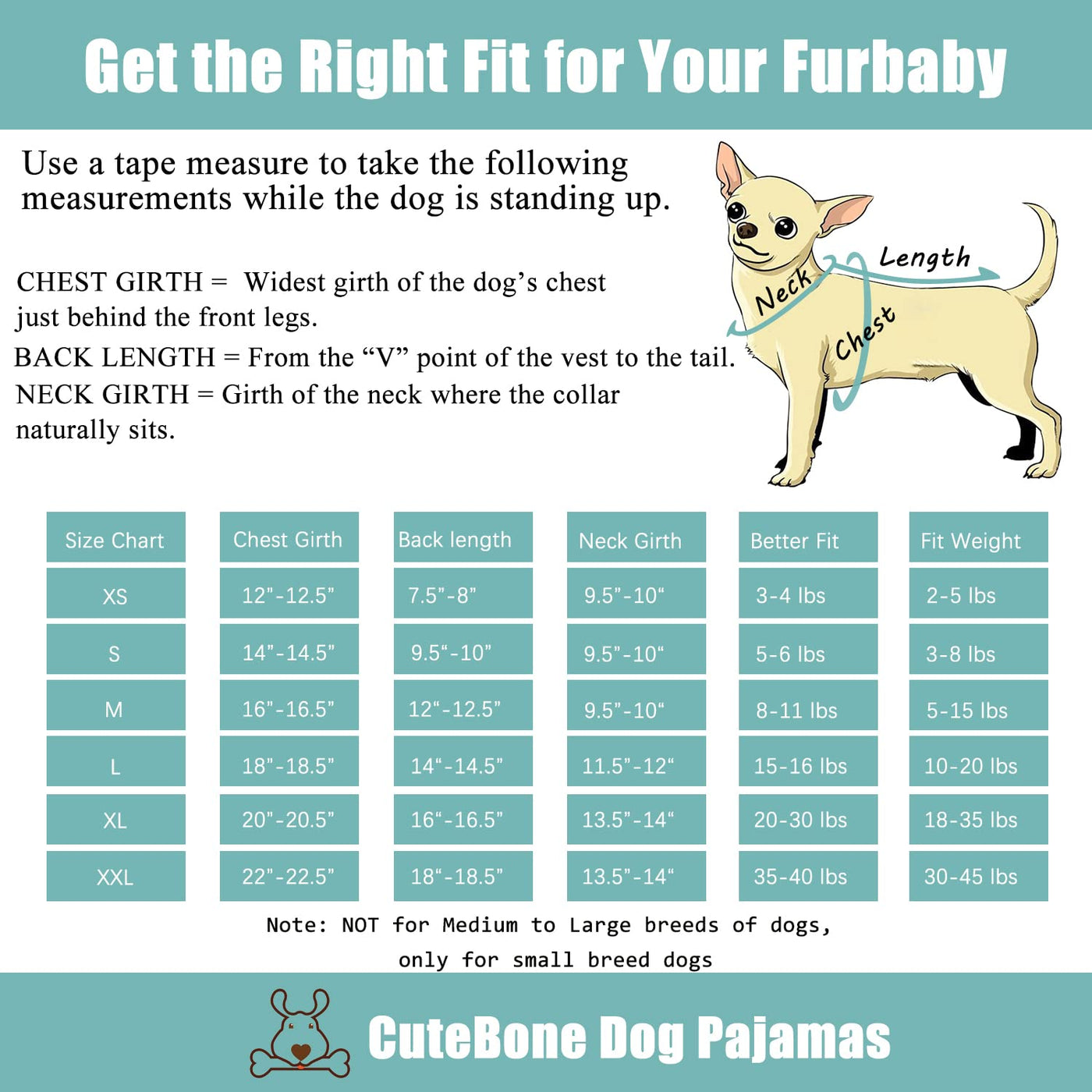 Q: What sizes are available for the CuteBone Dog Pajamas?A: The CuteBone Dog Pajamas are available in various sizes, including X-Large. It is crucial to measure your dog's chest girth and back length according to our provided guide to ensure the perfect fit.