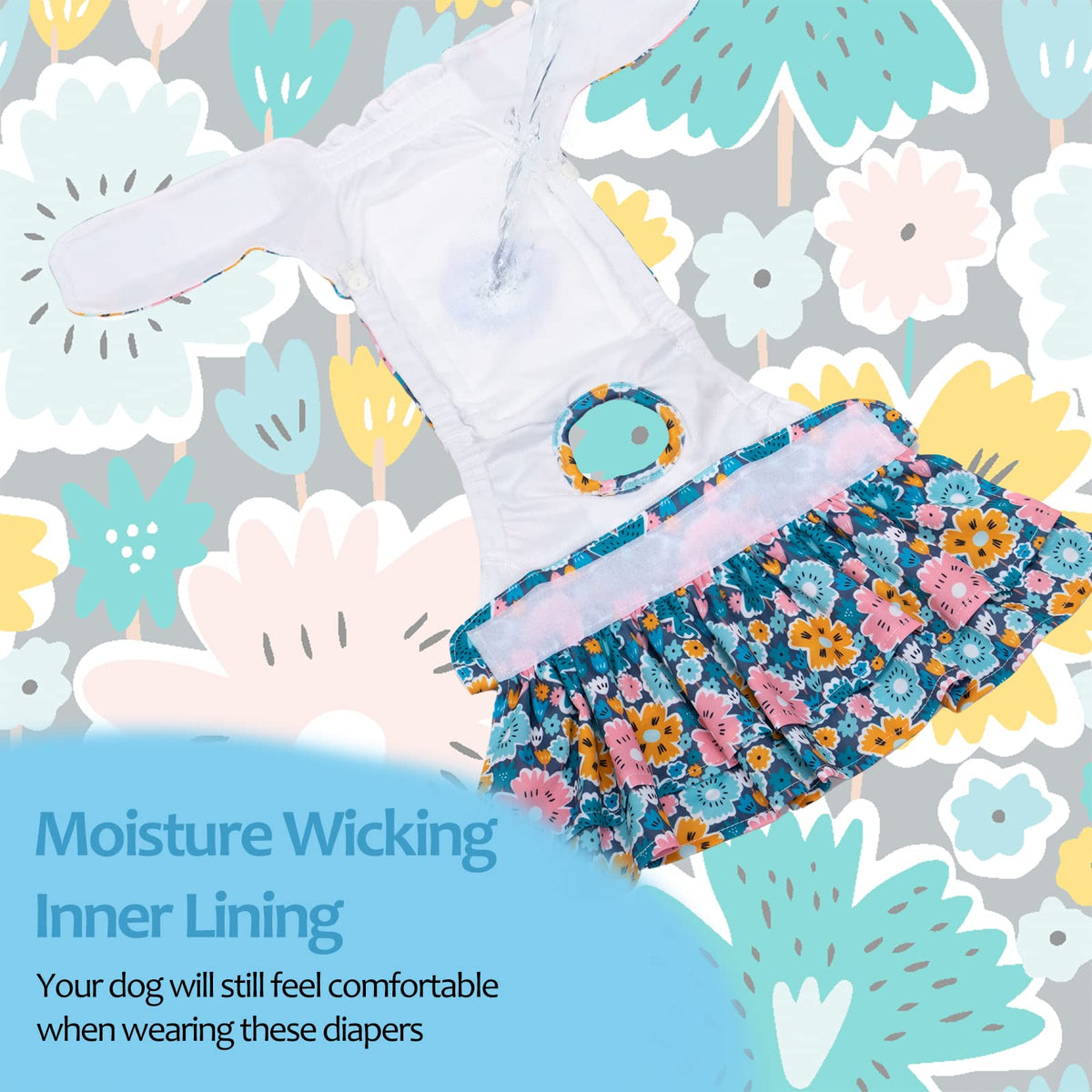 CuteBone Dog Diapers Skirts Female Reusable 3 Pack not only are diapers but ruffled skirts which are super cute and girly making your dogs enjoy the special periods without any shame.