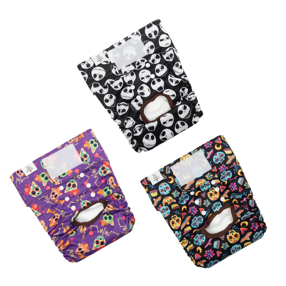 Cutebone Reusable Halloween Dog Diapers Female 3 Pack Washable Puppy Pants For Doggie Heat Period D41L