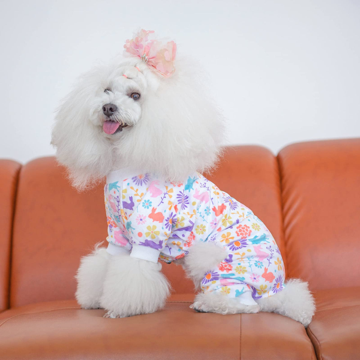 Cutebone Small Dogs Outfit Soft Puppy Onesies Pjs Dog Easter Rabbit Pajamas Pet Coat Cat Apparel Comfy Doggie Jumpsuit Bodysuit