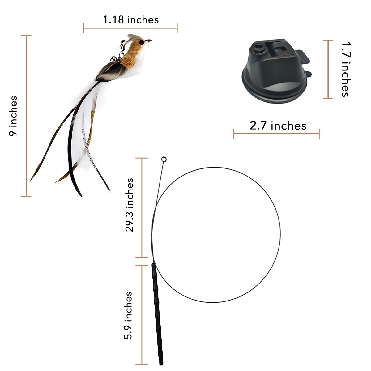 Cutie Paw Pal Interactive Suction Cup Cat Toy For Indoor Cat, Long Tail Feather Bird, Spring Wire Suctions To Ground, Hands Free