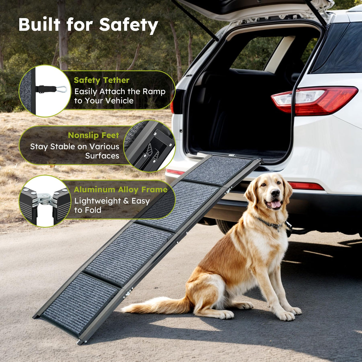 Make Every Trip With Your Furry Friend Easier And More Enjoyable With Cwawz'S Dog Ramp. Designed For A Smooth, Gentle Transition, This Car Ramp Features A Soft, Non-Slip Rug Surface, Giving Your Dog The Confidence To Step Up Or Down Safely. With A Sturdy 200 Lb. Capacity, It'S Perfect For Dogs Of All Sizes, Offering Ample Space With Its 67'' Length And 17'' Width. Ideal For Old Dogs, Those With Mobility Issues, Or Smaller Breeds Who Need A Helping Paw, Our Pet Ramp Provides A Safe, Stress-Free Way To Enjoy Car Rides Together. Lightweight, Foldable, And Easy To Store, This Folding Dog Ramp Is A Must-Have For Travel-Loving Pet Owners.