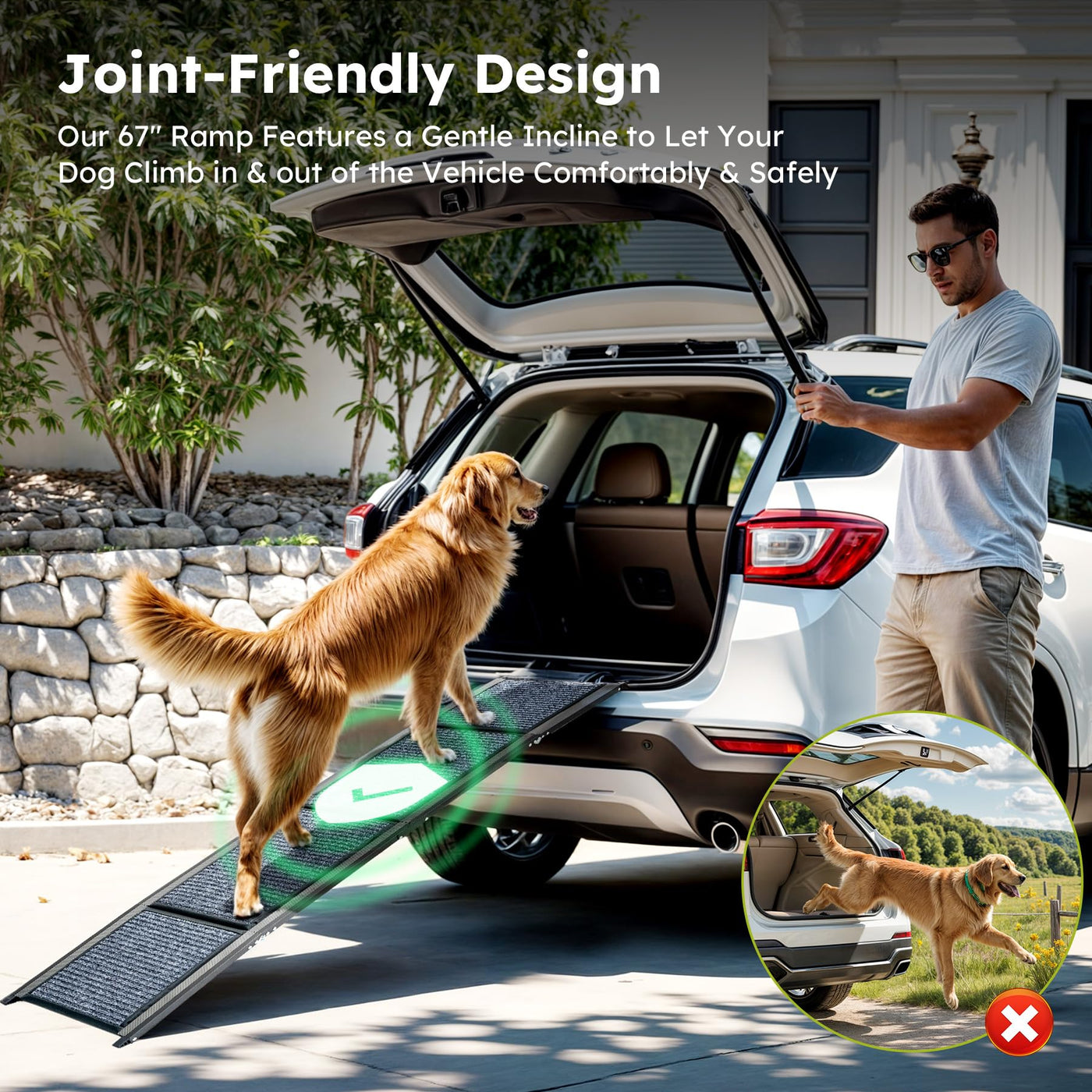 Cwawz Dog Ramp For Car, 67'' Folding Pet Ramp For Large Dogs Up To 200 Lb, 17'' Wide Car Ramp For Dog, Portable Pet Stair Ramp W