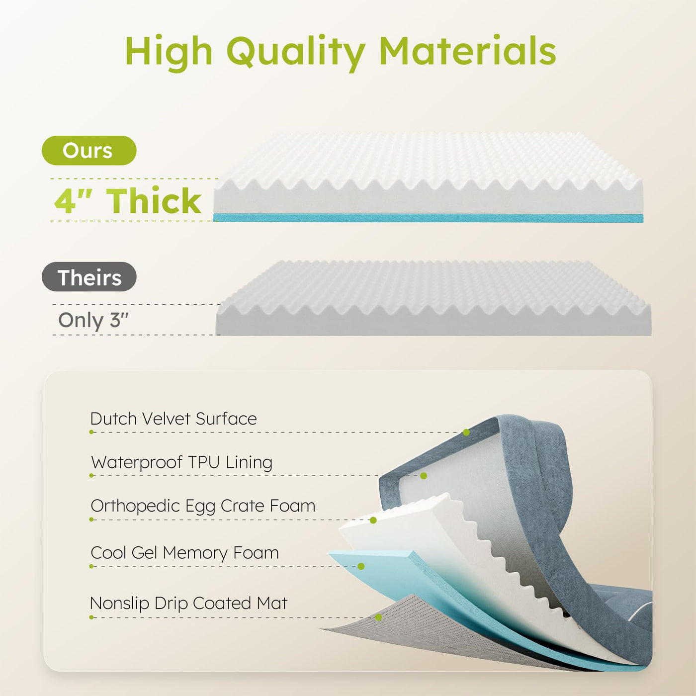 'If Your Dog Is Getting Up There In Age, It'S Time You Consider Cwawz'S Orthopedic Dog Bed To Give Them The Comfort They Deserve. Designed For Dogs Who Need Some Extra Orthopedic Joint And Spine Support After A Long Day Of Scratching And Digging, This Memory Foam Dog Bed Combines 4'' Extra Thick Certipur-Us Certified Egg Crate Memory Foam With Refreshing Cool Gel Foam To Ensure Your Pet'S Comfort All Year Round. Measuring 53 Inches Long And 42 Inches Wide, This Giant Dog Bed Is Ideal For Large Breeds. The Large Bolsters Upholstered In Oeko-Tex Standard 100 Certified Velvet Support Your Pet'S Head And Neck And Provide A Sense Of Security. Thanks To The Waterproof Lining And Removable Washable Cover, Keeping Your Home Looking And Smelling Its Best Is A Piece Of Cake. Experience The Ultimate In Comfort, Cleanliness, And Care For Your Furry Companion With Cwawz'S Jumbo Orthopedic Dog Bed. Because Your Pet'S Well-Being Deserves Nothing But The Best.'